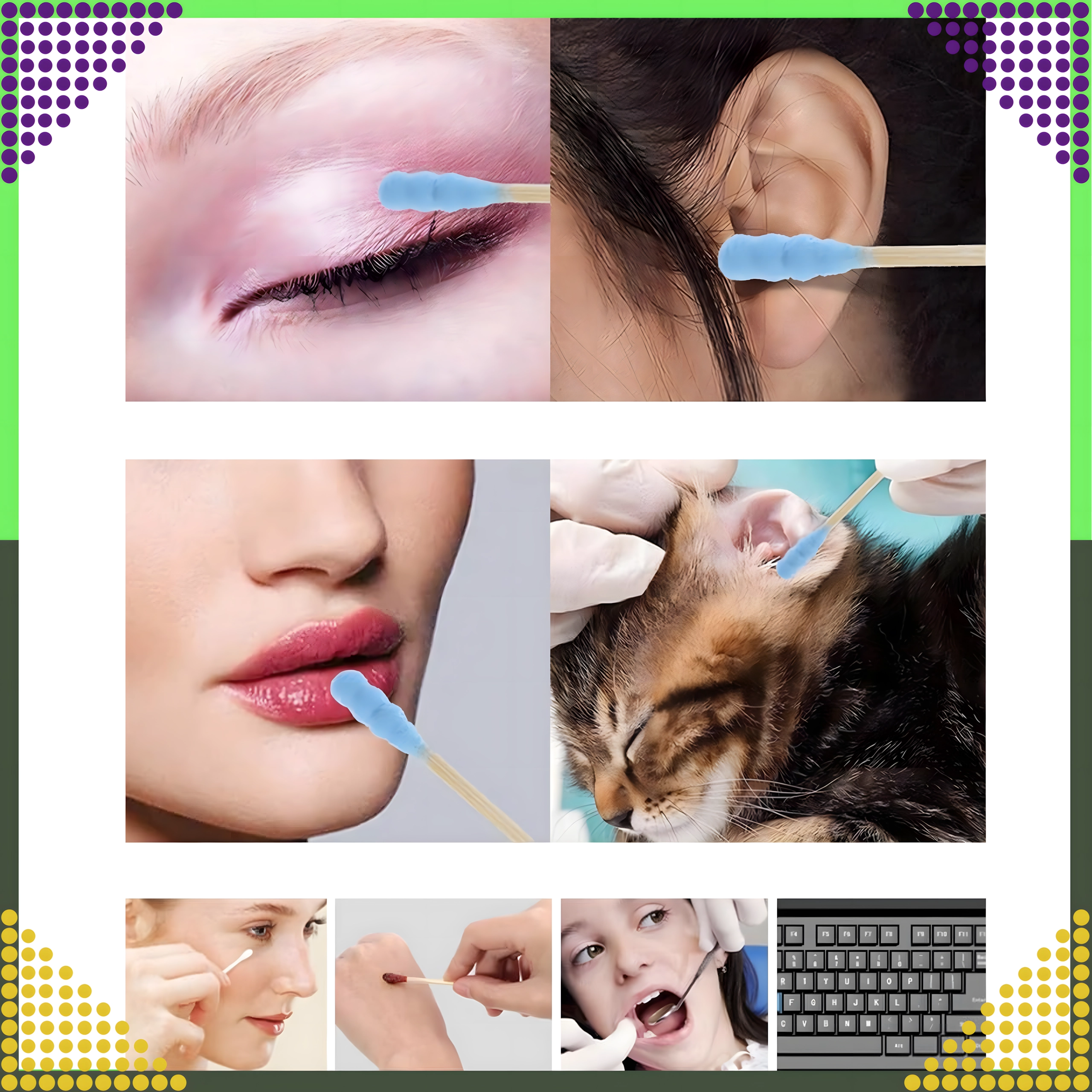 Odpowiednie do czyszczenia drobnych miejsc, korekty makijażu, nakładania preparatów oraz codziennej higieny uszu.