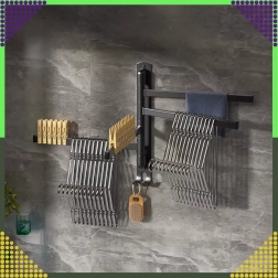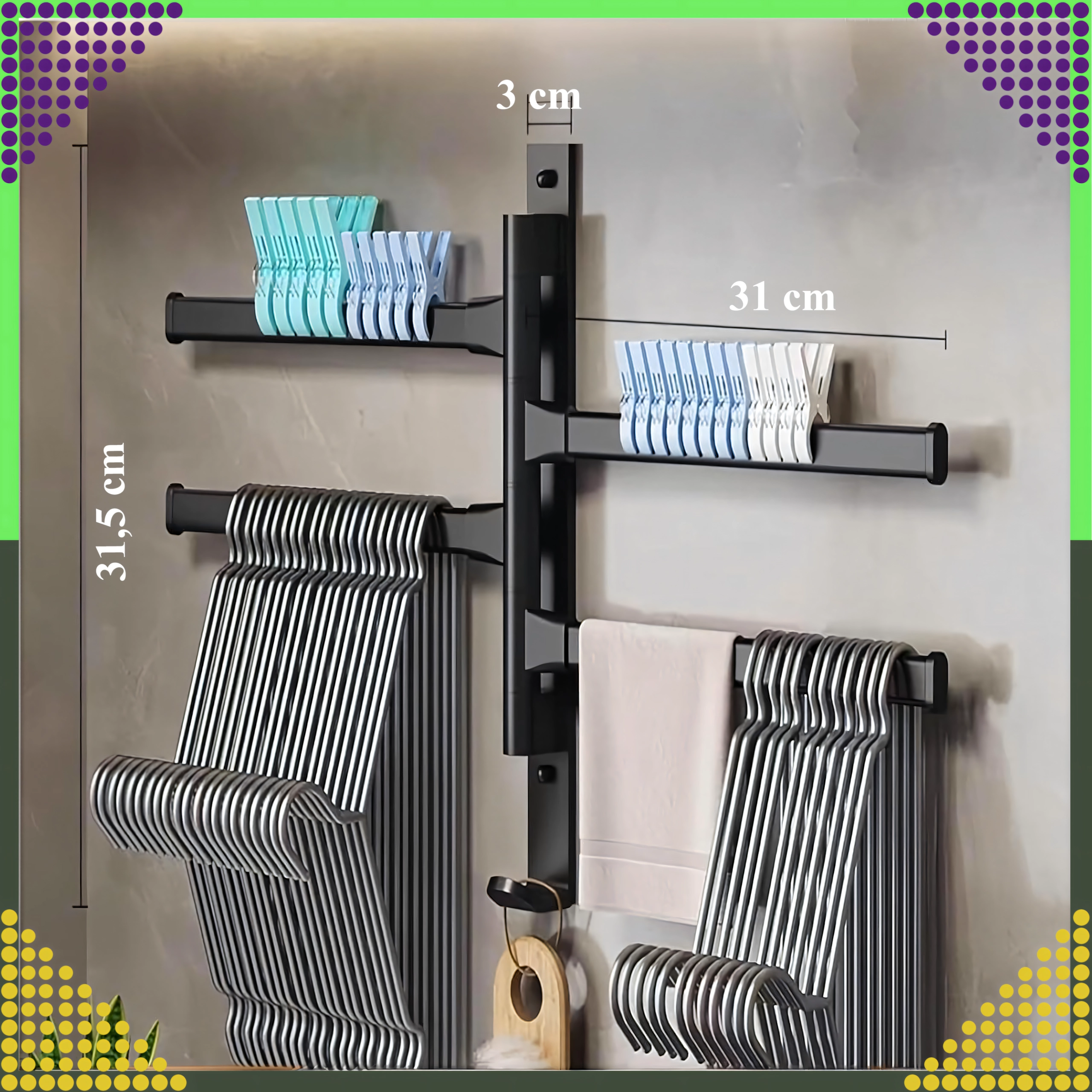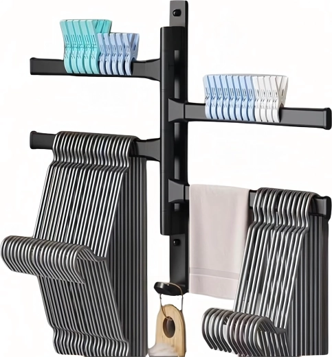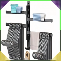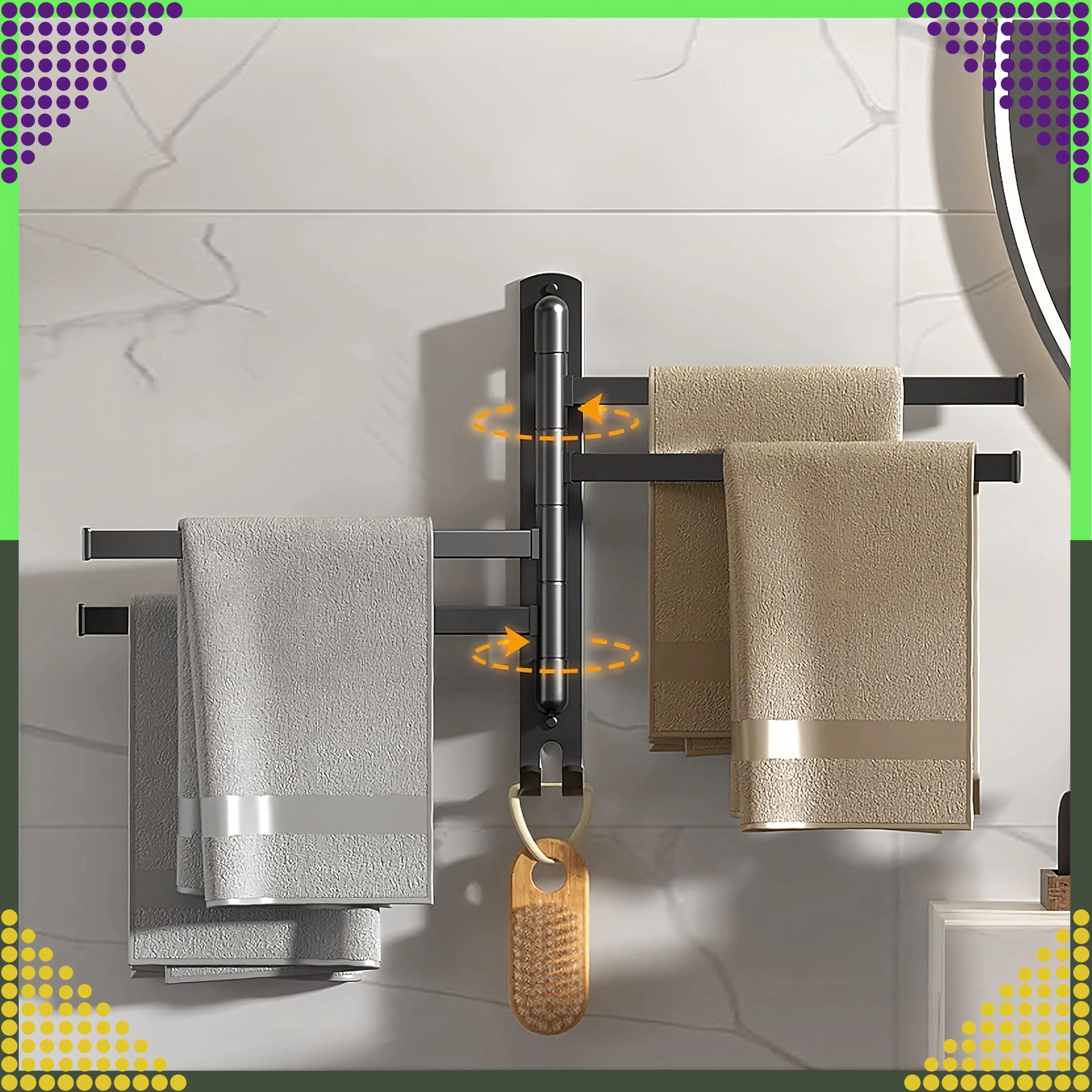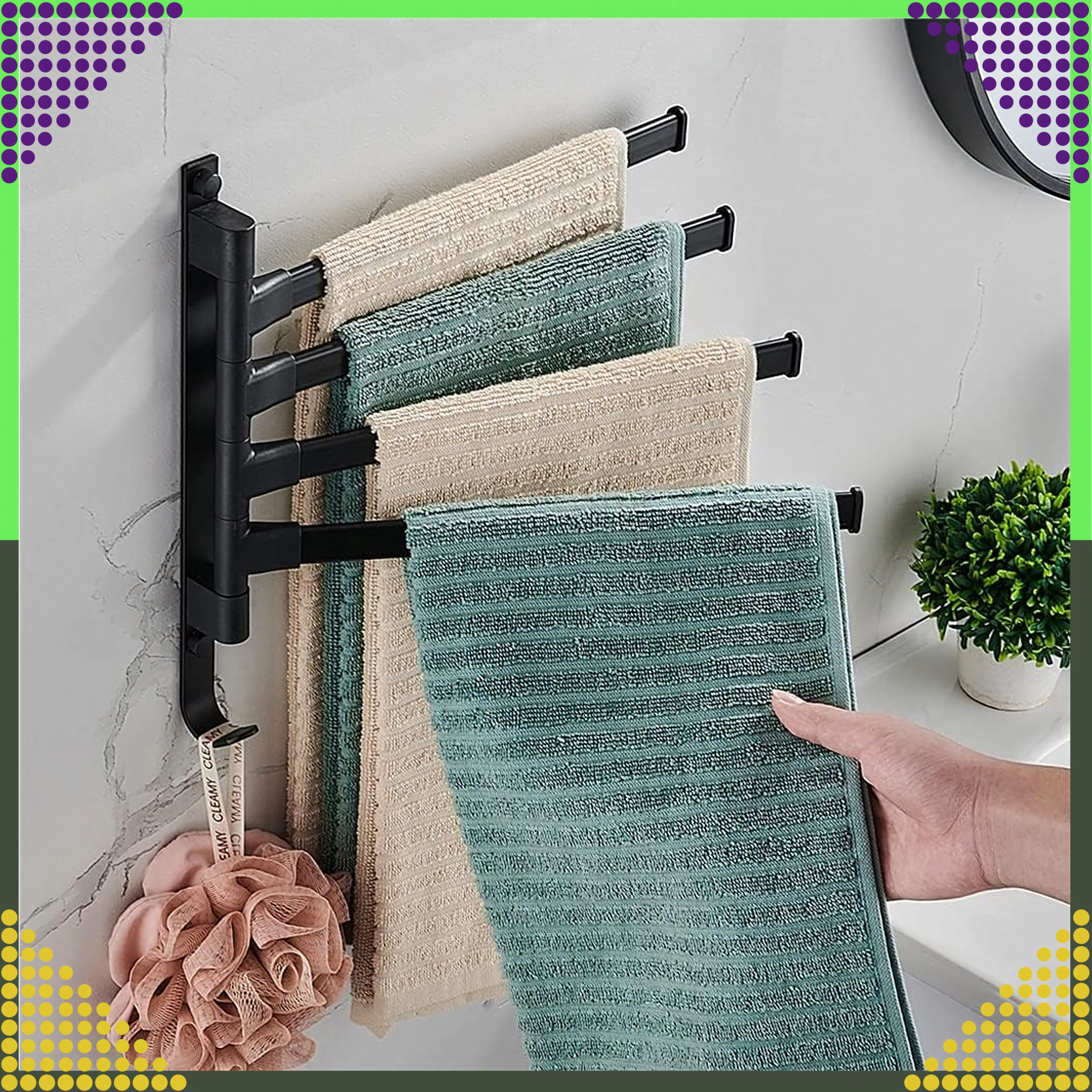 Ten uniwersalny obrotowy wieszak idealnie sprawdzi się w łazience, kuchni i garderobie. Cztery niezależnie odchylane ramiona umożliwiają wygodne zawieszenie kilku ręczników lub ścierek jednocześnie, lepszą cyrkulację powietrza i szybsze schnięcie. Dolny haczyk dodatkowo pomieści szczotkę, gąbkę lub akcesoria.
