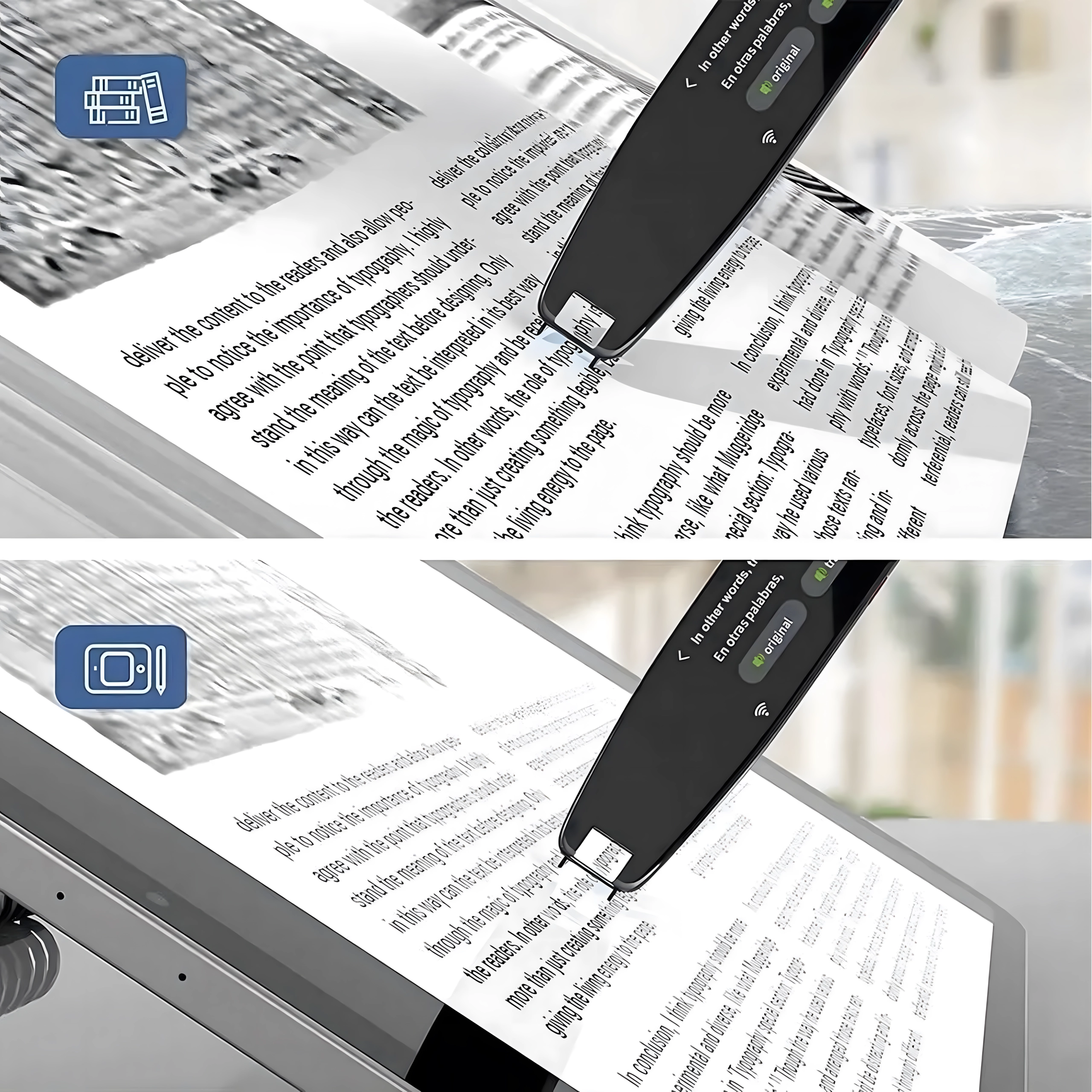 Inteligentne pióro tłumaczące to nowoczesny elektroniczny tłumacz tekstu i mowy, który obsługuje do 132 języków. Oferuje natychmiastowe tłumaczenie mowy i drukowanego tekstu w czasie rzeczywistym, ma ekran dotykowy, skanowanie OCR, głośne odczytywanie wymowy oraz nagrywanie dźwięku – idealne dla podróżników, studentów, nauczycieli i profesjonalistów w środowisku międzynarodowym. Wymaga połączenia z internetem.