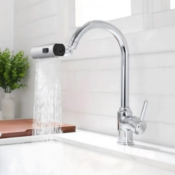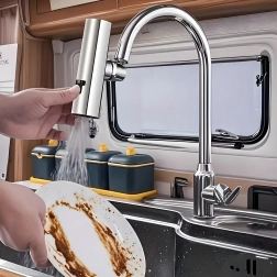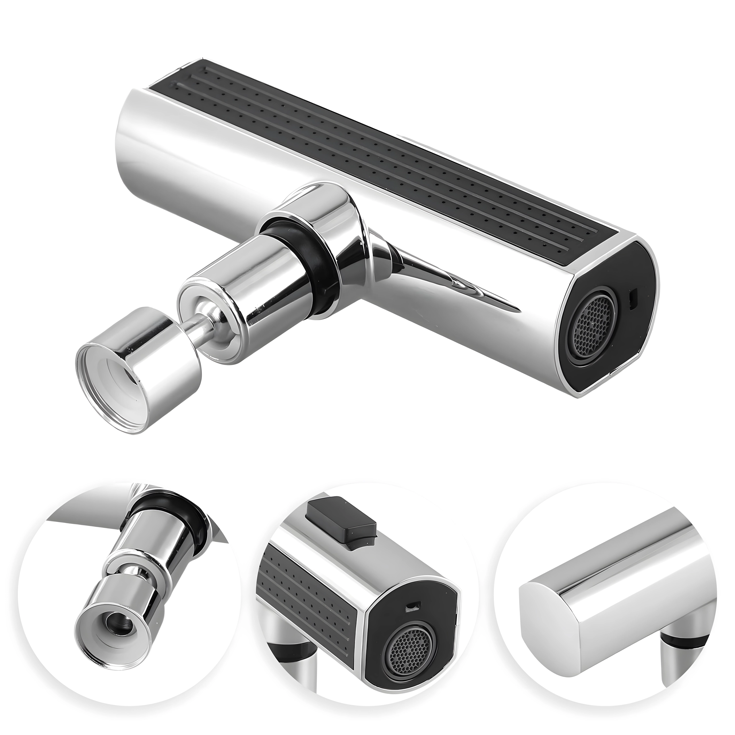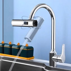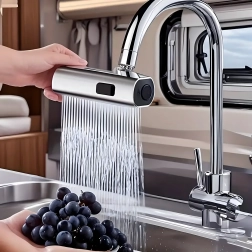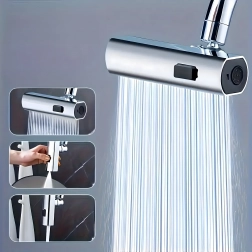 Praktyczna nasadka na kuchenny kran umożliwia wygodną zmianę strumienia wody. Dzięki zintegrowanemu perlatorowi oszczędzającemu wodę oraz uniwersalnemu adapterowi do większości kranów oferuje 3 funkcje strumienia: delikatna mgiełka, mocny strumień i prysznic – idealne do mycia naczyń, płukania warzyw i szybkiego czyszczenia zlewu.