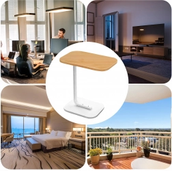 - Metalowa podstawa, blat w dekorze jasnego drewna