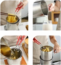 - Głębokie smażenie, gotowanie i odcedzanie makaronu lub warzyw
