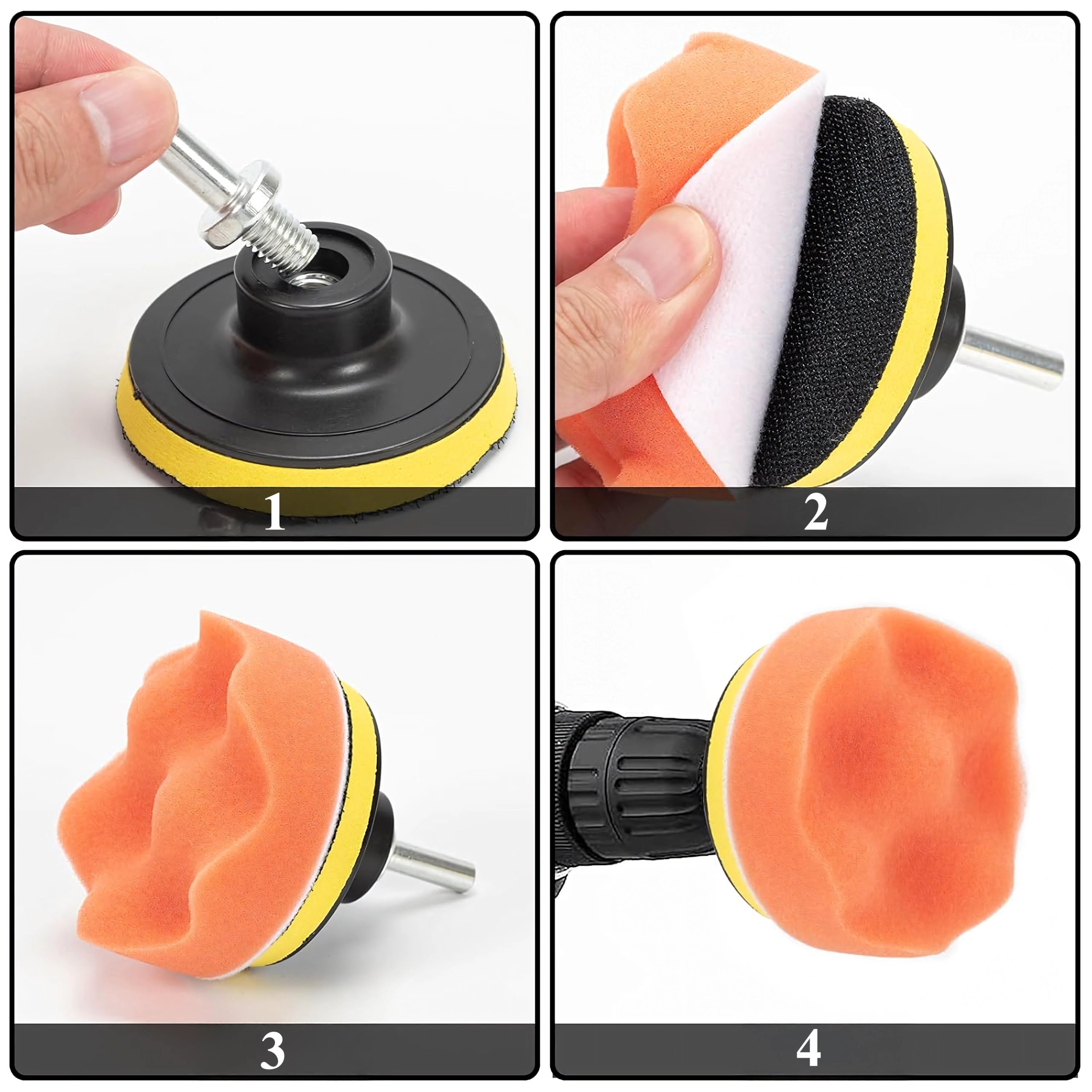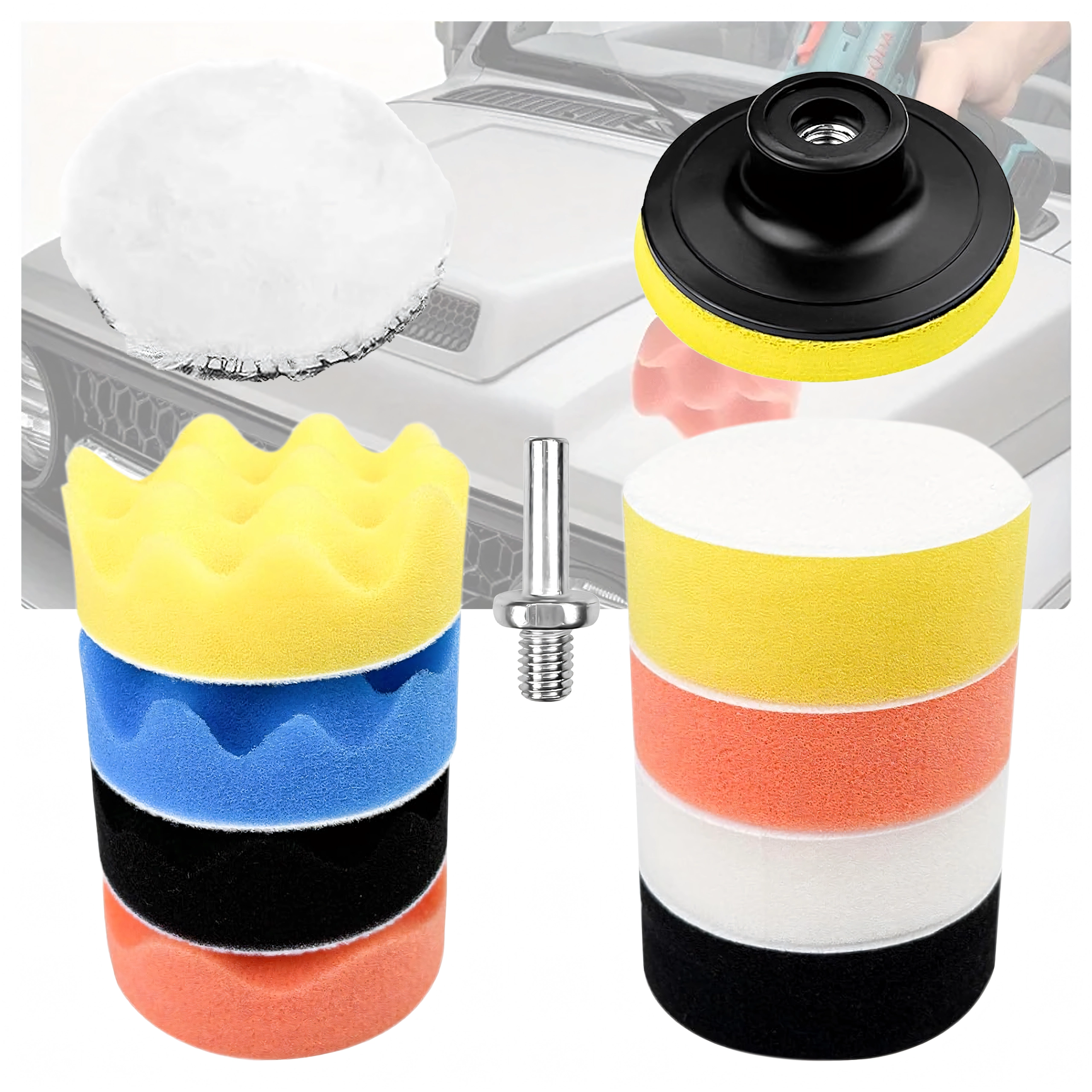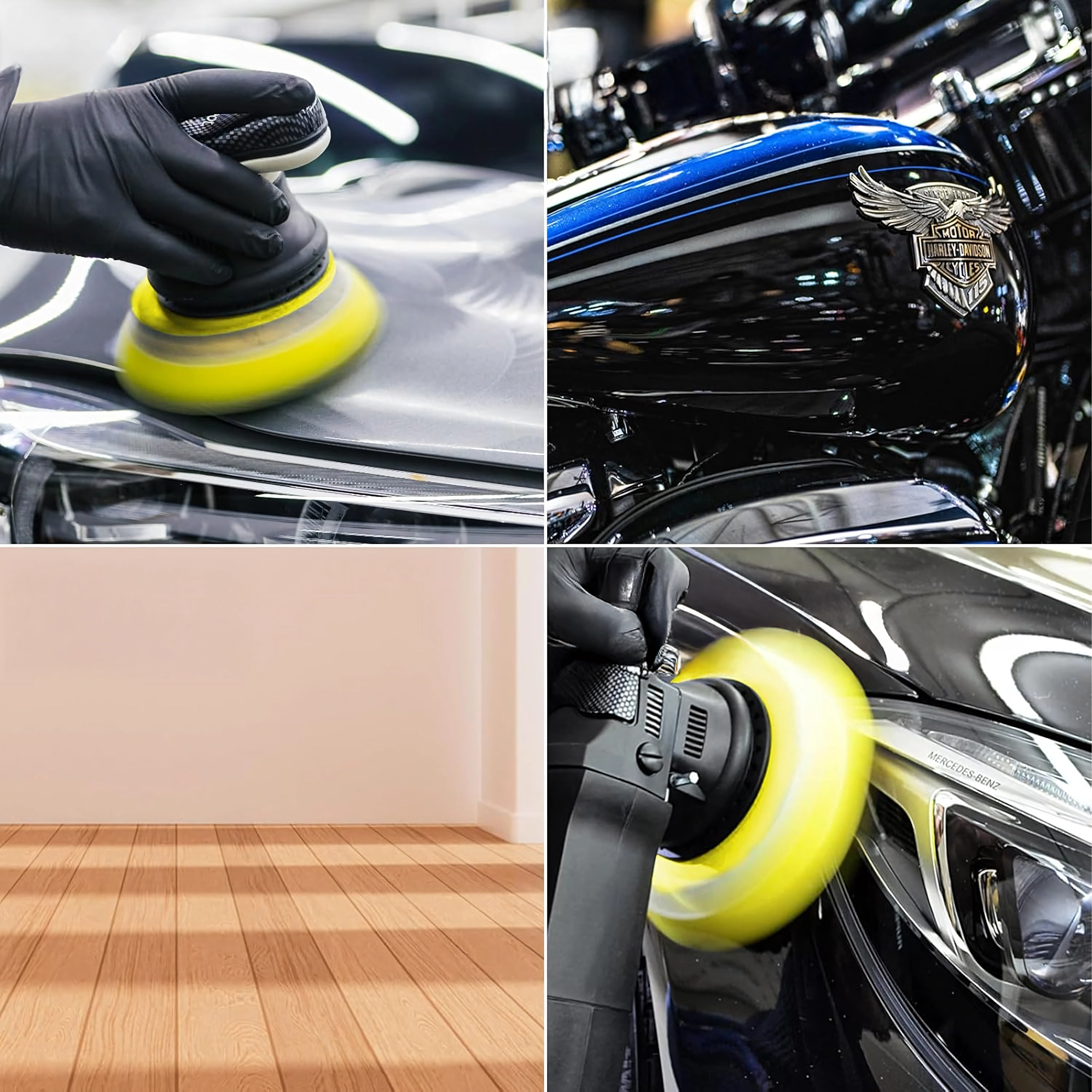 Ten praktyczny, 11‑częściowy zestaw gąbek polerskich z adapterem pozwala szybko usunąć drobne rysy, przywrócić połysk i równomiernie nakładać wosk lub pastę. Zróżnicowana gęstość i struktura pianki jest idealna do etapów od cięcia aż po finalne wykończenie, a fleece/wełna przyspiesza polerowanie i zwiększa połysk.