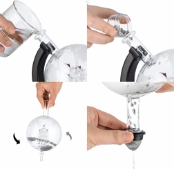 Karafa w kształcie globusa elegancko się obraca, a dzięki podstawie zapewnia stabilną i efektowną ekspozycję na każdym barze lub stole.