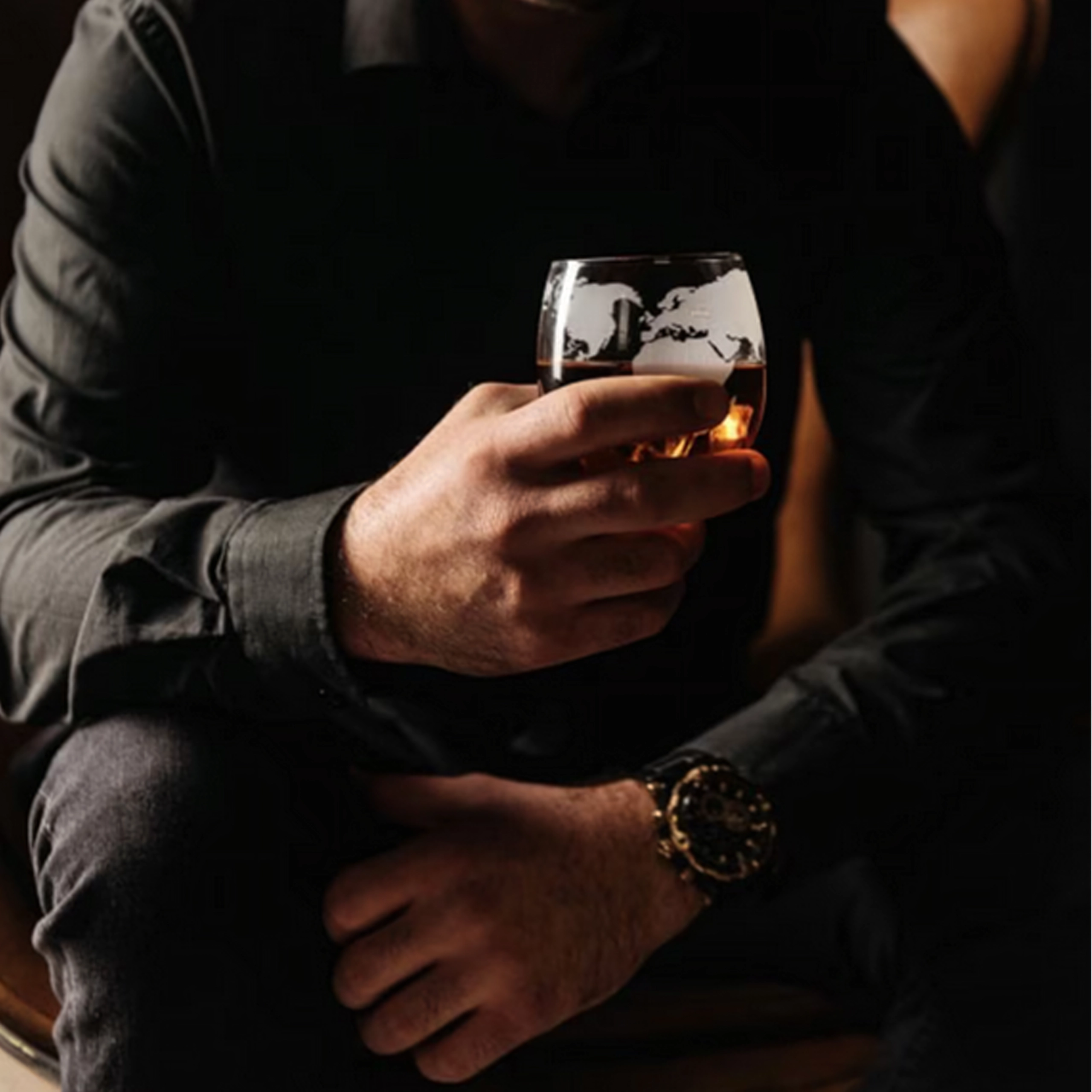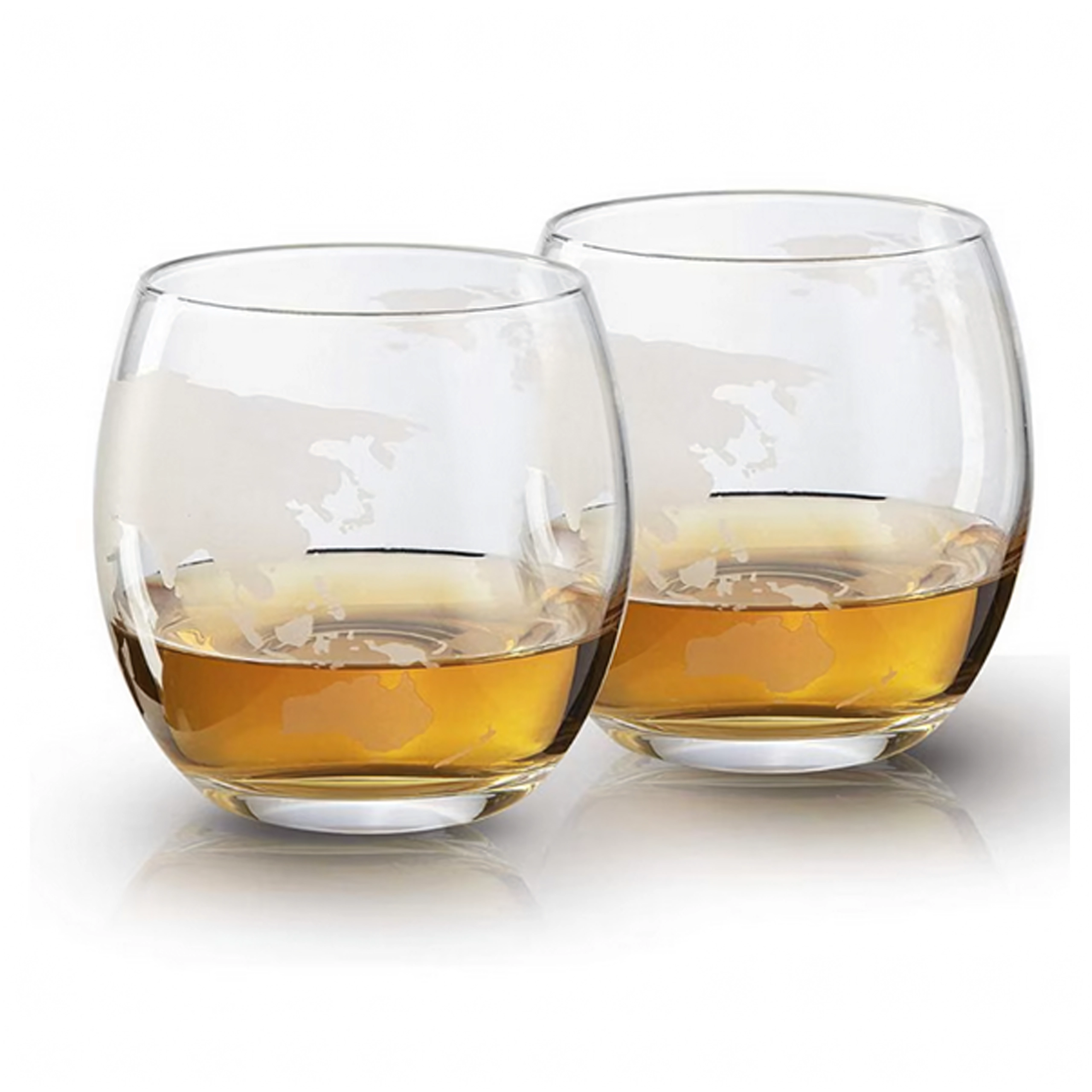 W komplecie są dwie okrągłe szklanki z matowym motywem mapy, idealne do whisky, rumu czy innych premiumowych destylatów. Zestaw doskonały jako reprezentacyjny prezent dla miłośników wysokiej jakości trunków, do gabinetu i domowego barku.