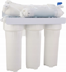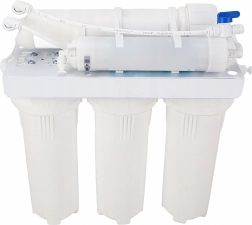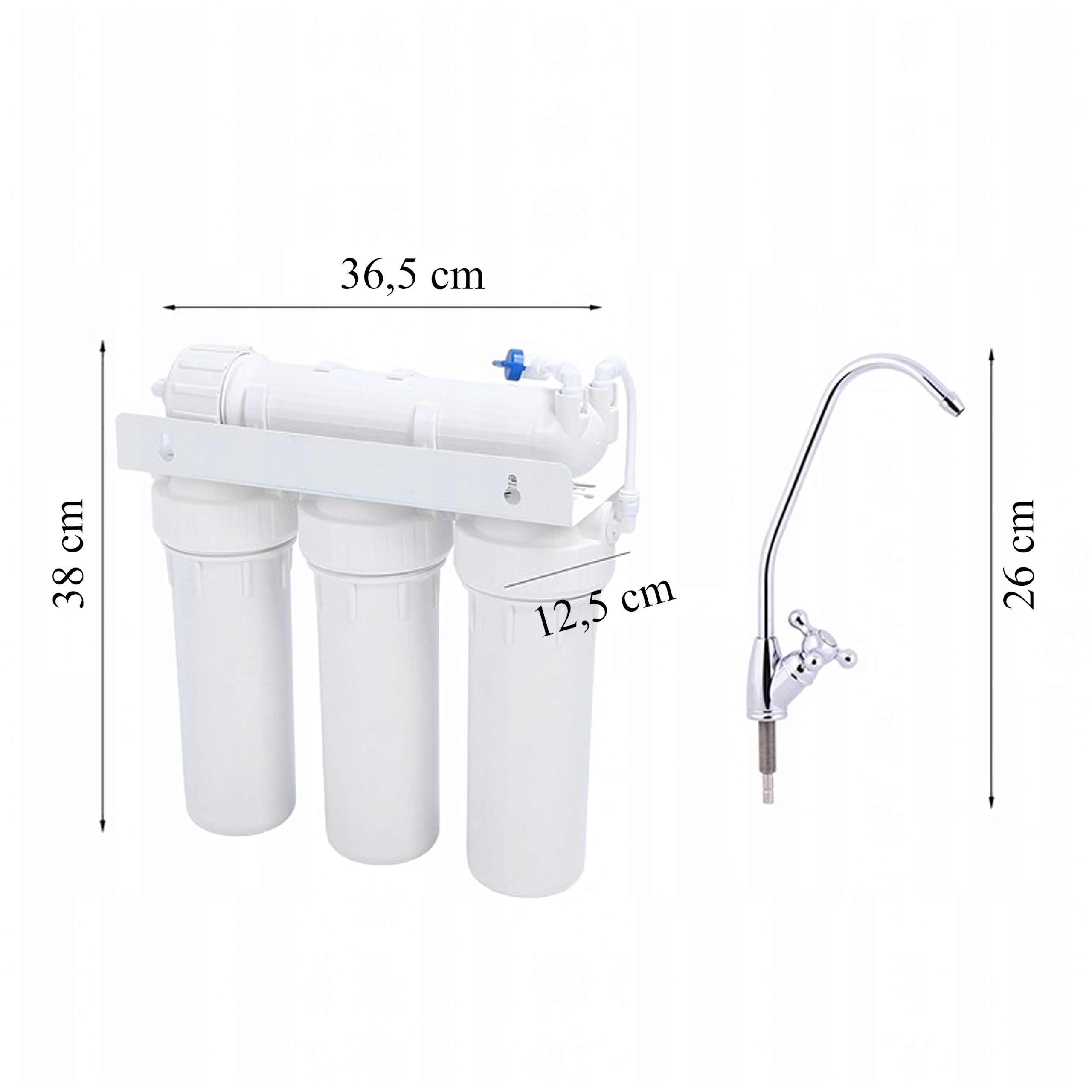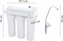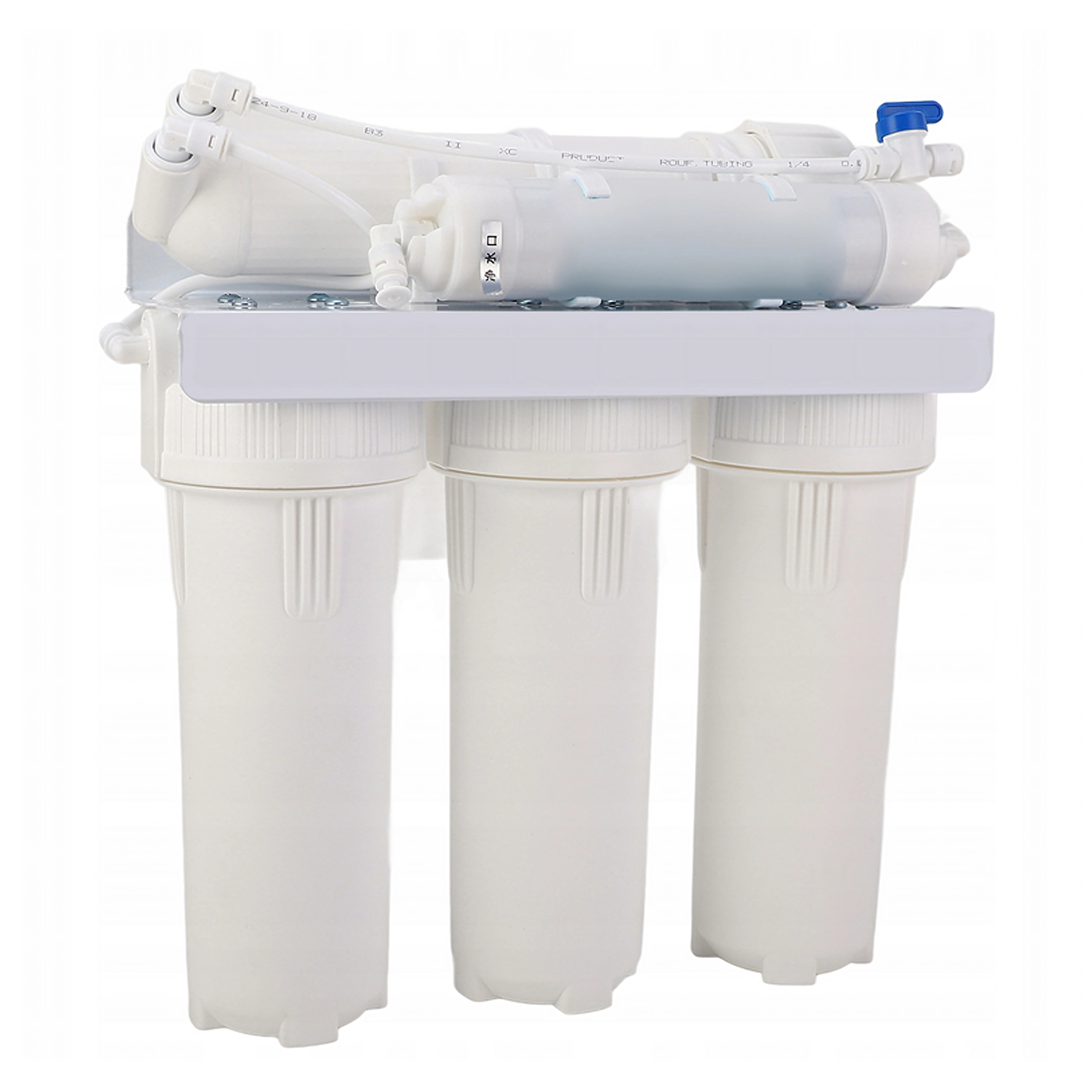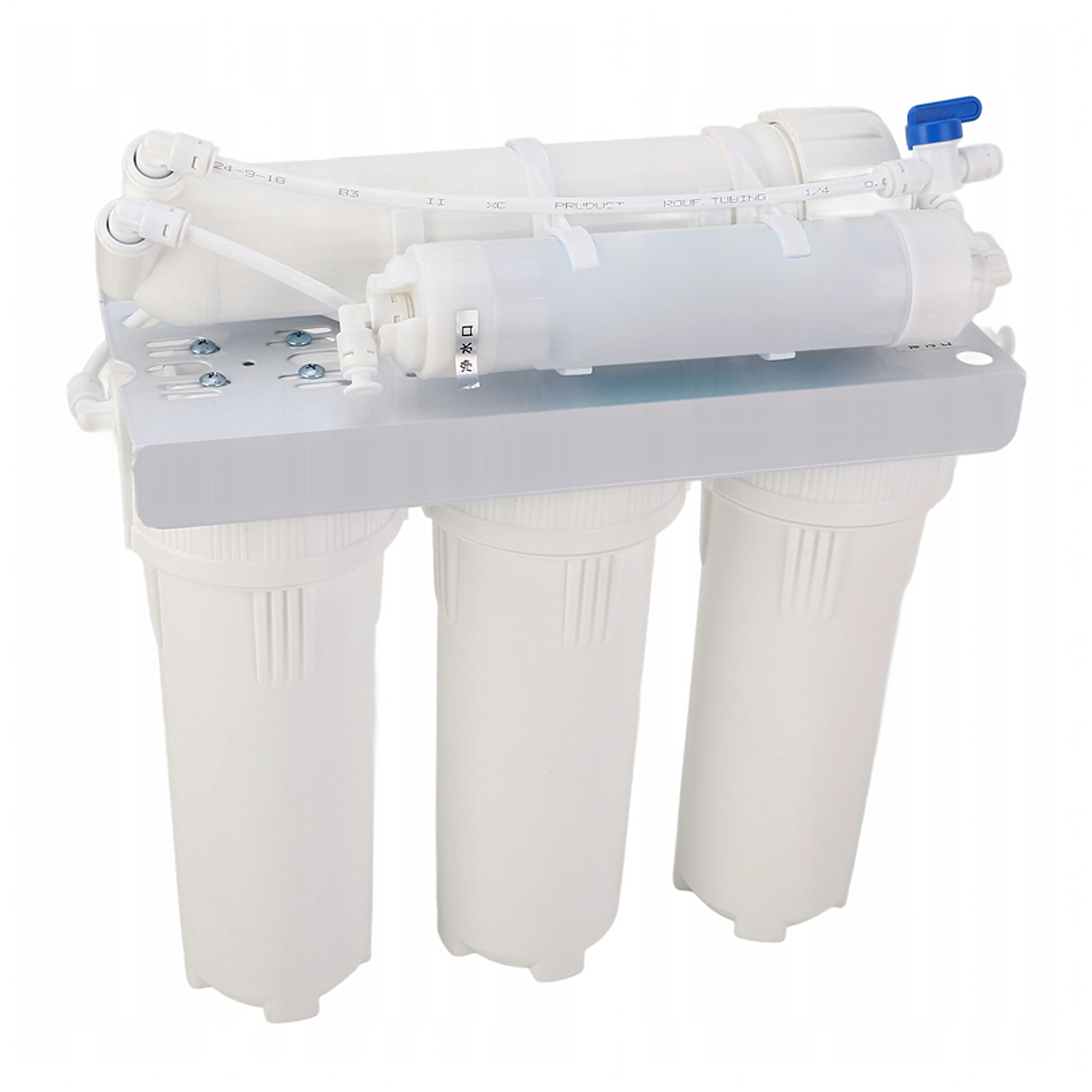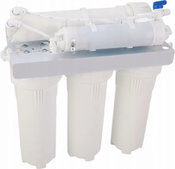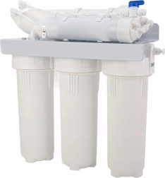 - Filtr wstępny osadowy, filtr wstępny węglowy, membrana RO, węglowy filtr doczyszczający, mineralizator