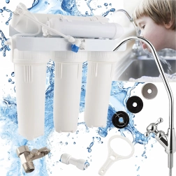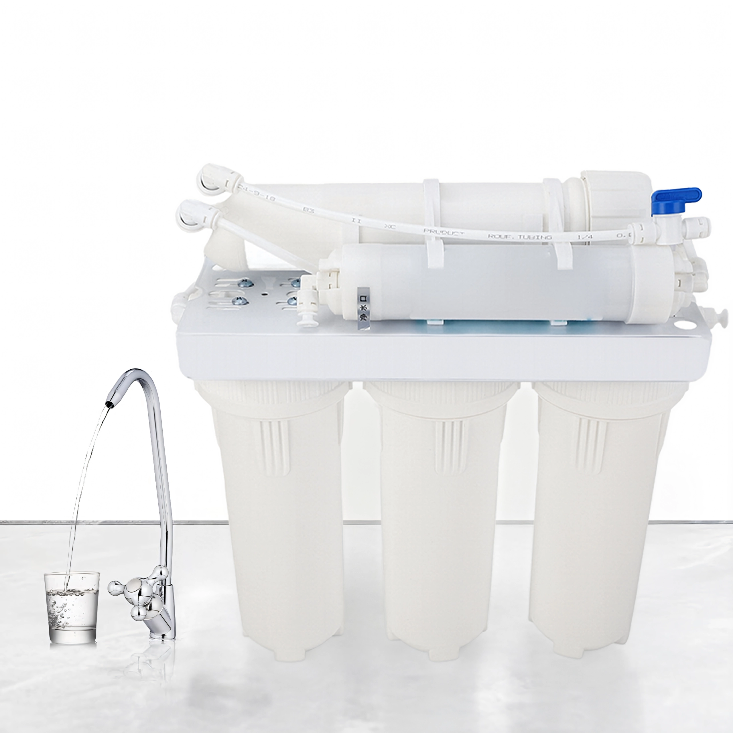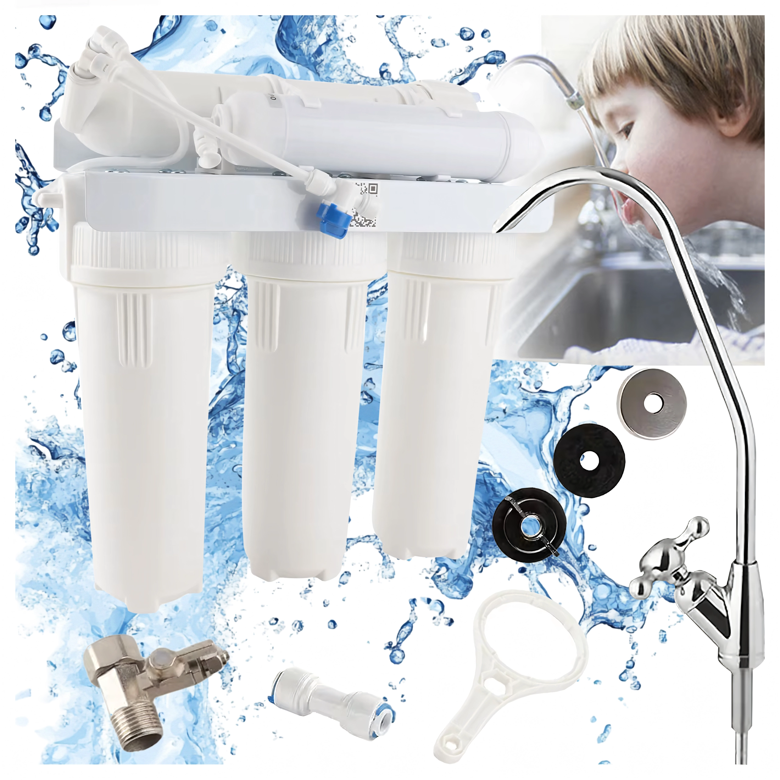 Nowoczesny system uzdatniania wody pitnej z odwróconą osmozą, który usuwa aż 99% zanieczyszczeń, w tym chlor, metale ciężkie, bakterie, mikroplastik i pestycydy. Działa bez prądu – wystarczy ciśnienie wody. Dzięki 5-stopniowej filtracji i mineralizatorowi otrzymasz czystą, zdrową i smaczną wodę prosto z kranu, idealną do picia, gotowania i przygotowywania napojów. Oszczędza pieniądze, jest ekologiczny i wygodny – koniec z wodą butelkowaną!