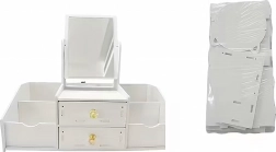 Elegancka biała mini toaletka oszczędza miejsce na stoliku czy komodzie i stylowo dopełnia sypialnię, łazienkę lub garderobę.