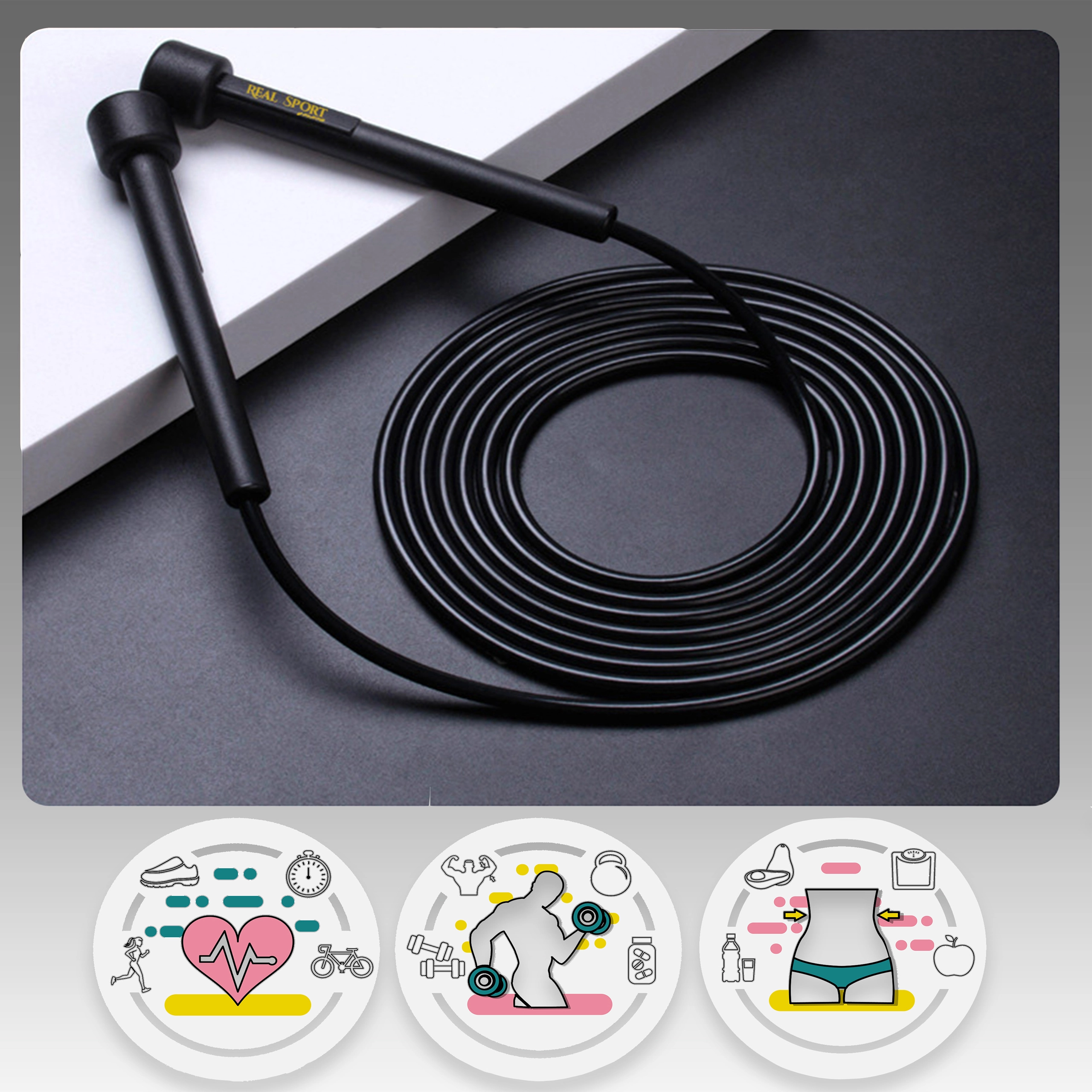 Gładka linka PVC zapewnia minimalne tarcie i płynny zamach do treningu szybkościowego i interwałowego bez zacięć.