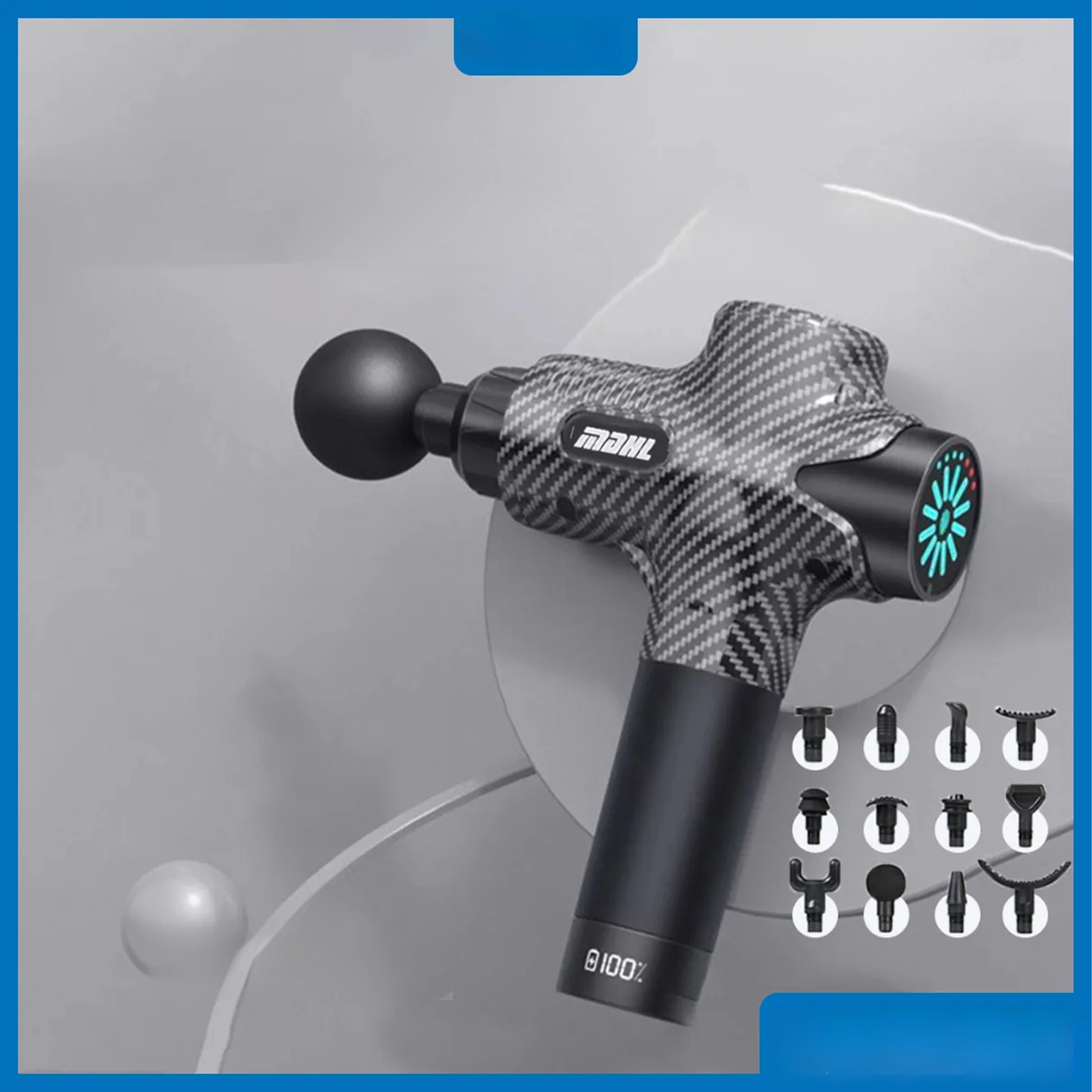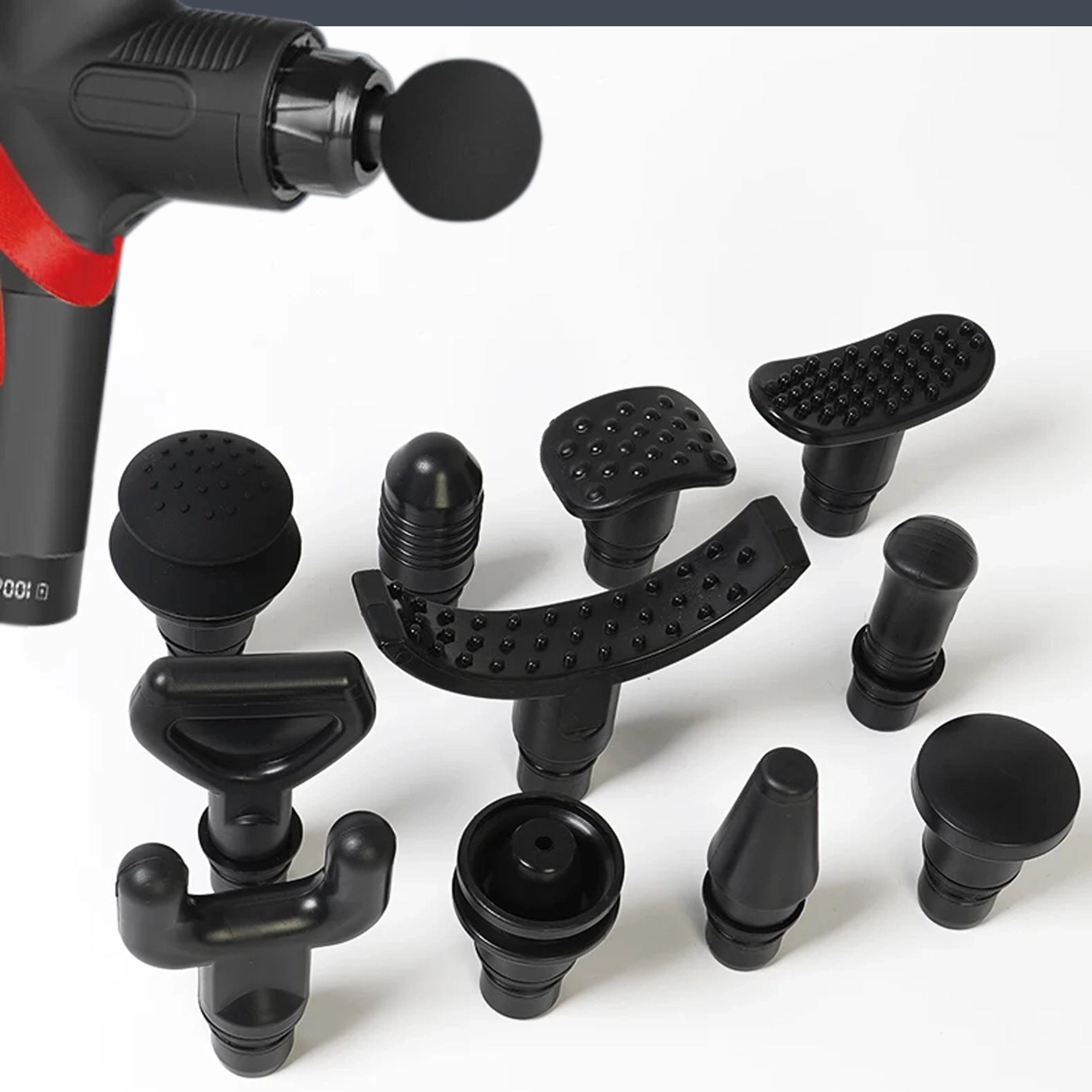 Kulista, płaska, widełkowa, „pocisk” i inne nasadki umożliwiają precyzyjne celowanie od dużych grup mięśniowych po punkty spustowe.