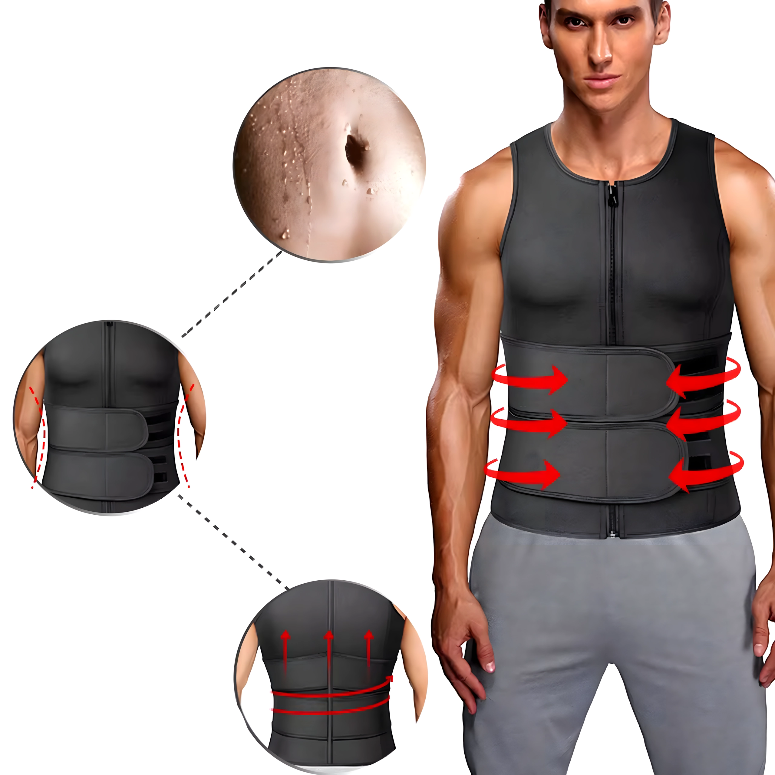 Ta męska kompresyjna kamizelka saunowa z wysokiej jakości neoprenu podnosi temperaturę w okolicach tułowia, wspierając pocenie i skuteczniejsze spalanie kalorii. Jednocześnie stabilizuje core, poprawia postawę i zmniejsza zmęczenie pleców podczas treningu siłowego, biegu i kardio. Przedni zamek oraz szerokie, regulowane pasy pozwalają na szybkie zakładanie i precyzyjne dopasowanie według potrzeb.