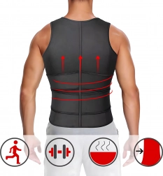 Przyspiesz efekty ćwiczeń dzięki męskiej neoprenowej kamizelce, która podnosi temperaturę ciała, wspiera pocenie i pomaga spalać kalorie. Dzięki zamkowi błyskawicznemu i regulowanym pasom oferuje mocną kompresję, modelowanie talii oraz wsparcie pleców podczas codziennych treningów i zwykłego noszenia.