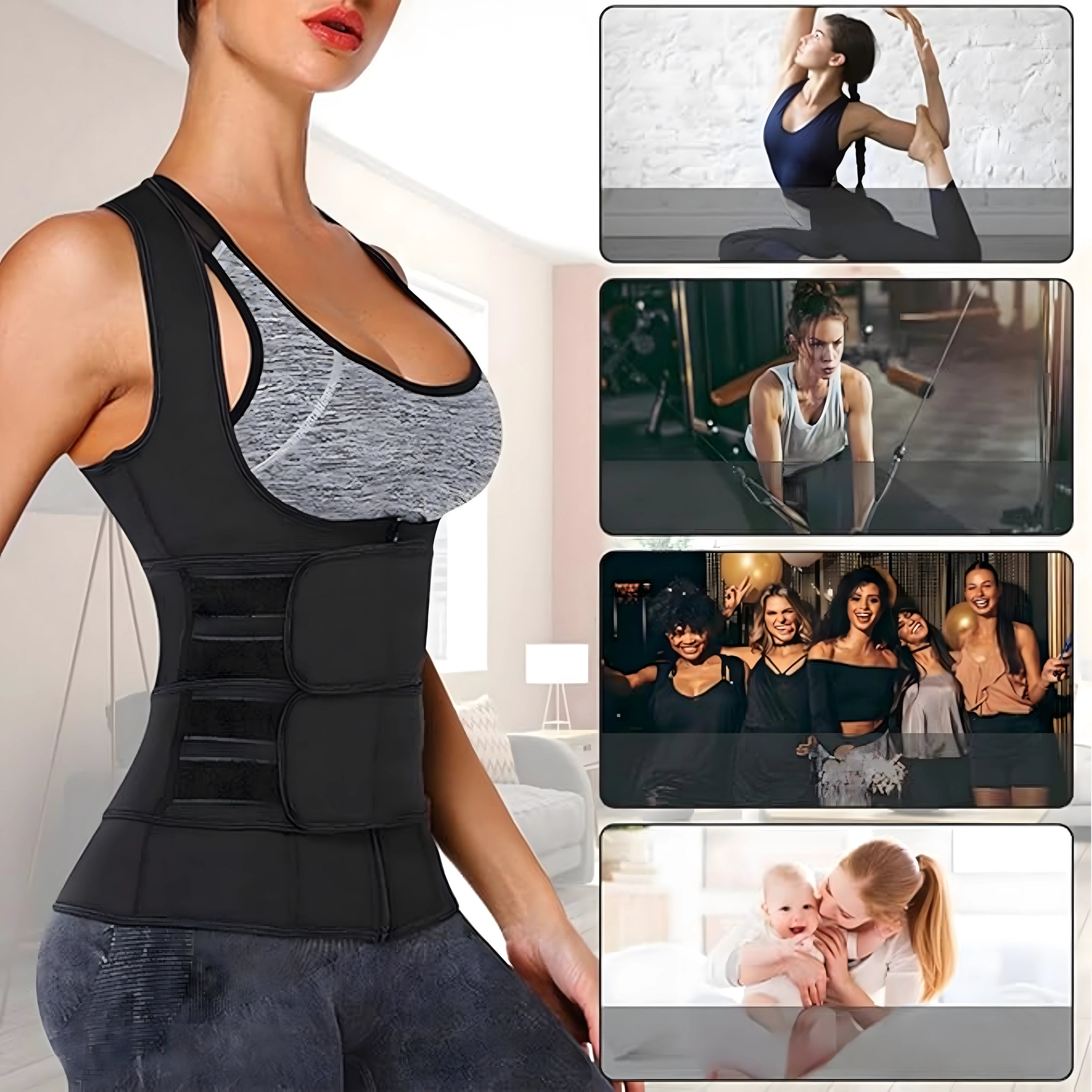 Przyspiesz efekty treningu dzięki damskiej neoprenowej kamizelce z efektem sauny. Zapewnia intensywniejsze spalanie kalorii, modelowanie talii oraz wspiera plecy i prawidłową postawę, pozostając wygodna i elastyczna zarówno do codziennych treningów, jak i noszenia na co dzień.