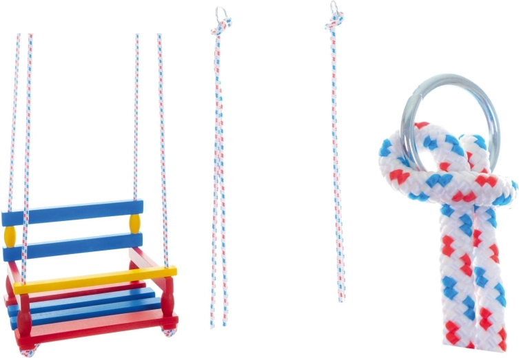 Piękna drewniana huśtawka dla dzieci do wnętrz i ogrodu oferuje bezpieczne i stabilne bujanie. Ma wymiary siedziska 38 × 30 cm i udźwig 80 kg, dzięki czemu jest idealna dla dzieci od 3 lat.