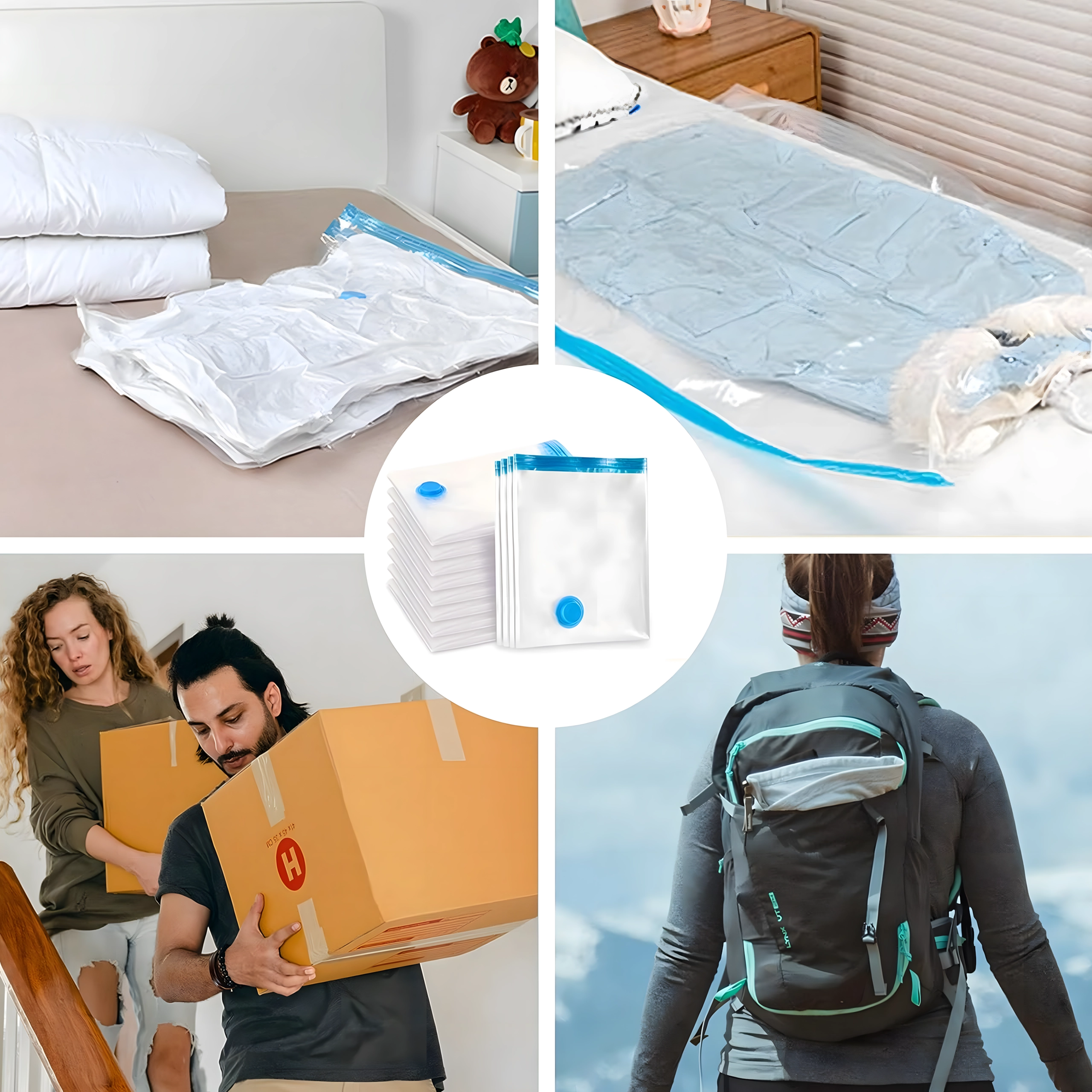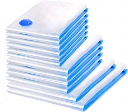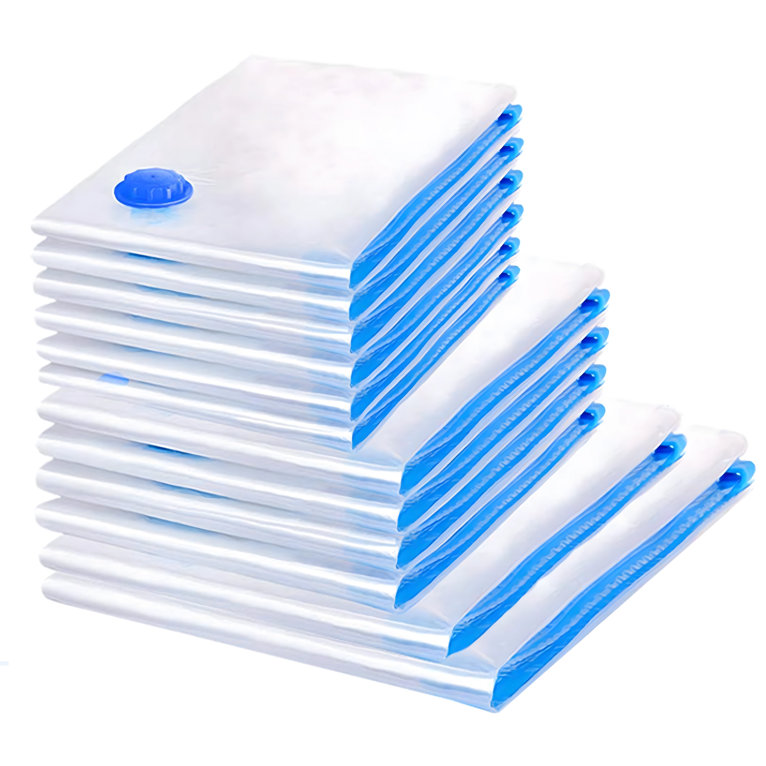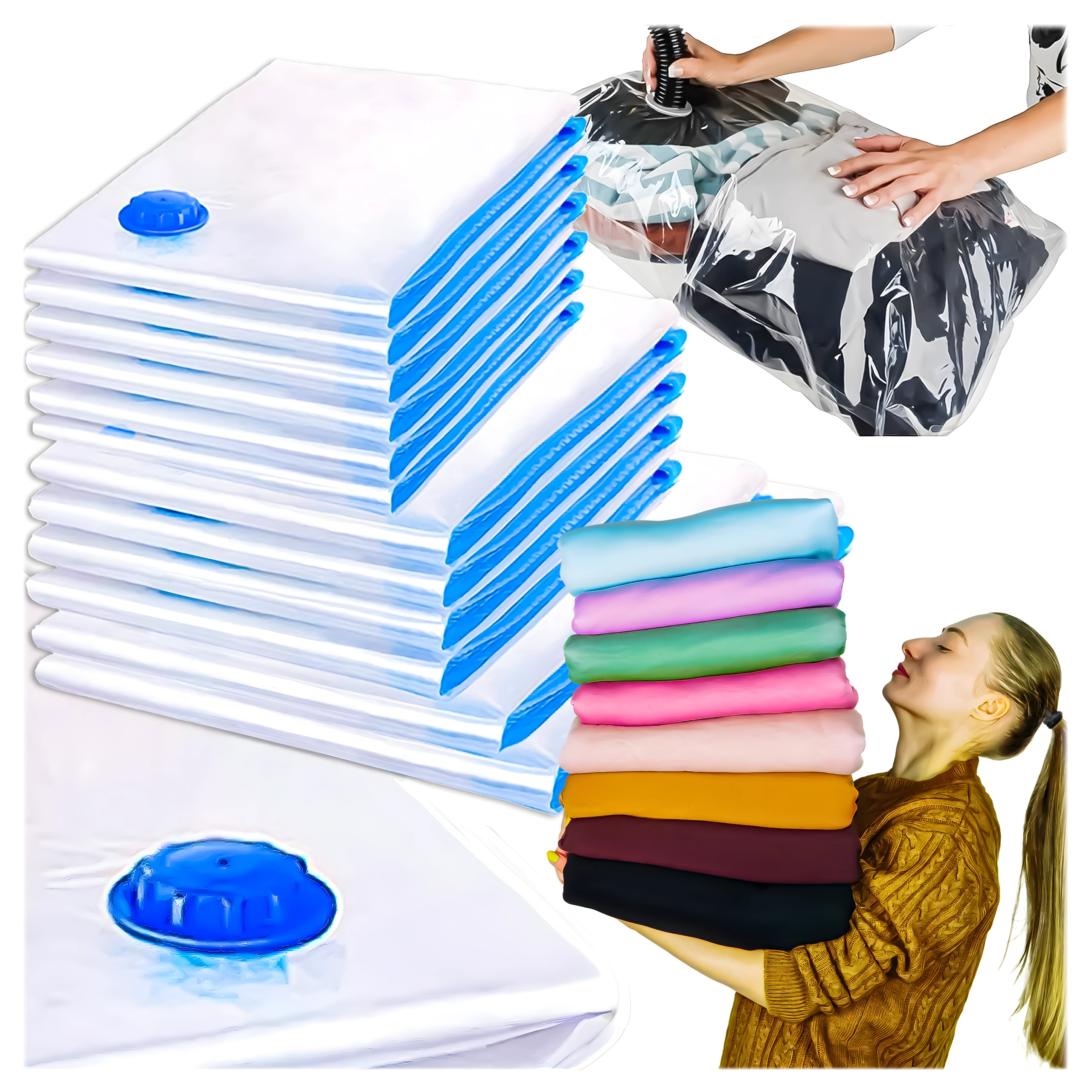Ten uniwersalny zestaw zawiera 12 worków próżniowych w czterech praktycznych rozmiarach, dzięki którym łatwo zaoszczędzisz miejsce w szafach, podczas przeprowadzki i w podróży. Przezroczyste ścianki ułatwiają identyfikację, a podwójny uszczelniający zamek z suwakiem oraz zakręcany zawór utrzymują zawartość skompresowaną i chronioną przez długi czas.