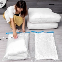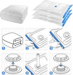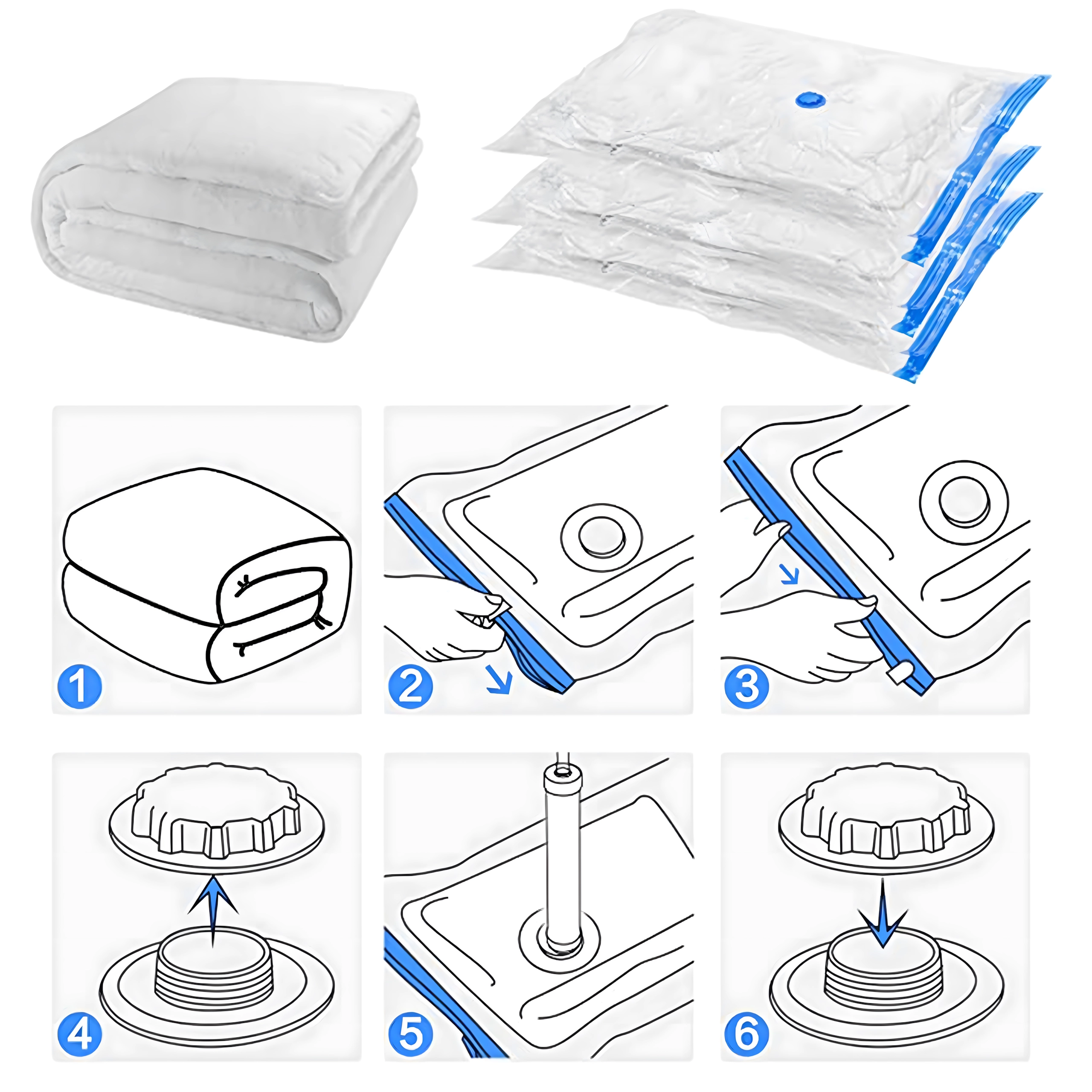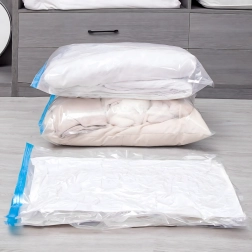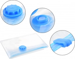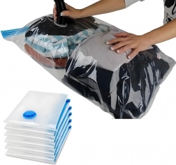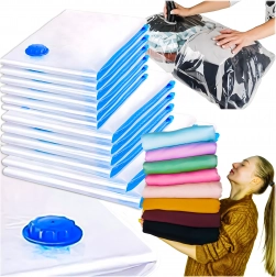 Zrób porządek i zyskaj więcej miejsca dzięki zestawowi domowych worków próżniowych. Worki są wielokrotnego użytku, mają podwójny zamek oraz hermetyczny zawór do szybkiej kompresji za pomocą odkurzacza lub pompki. Niezawodnie chronią przed wilgocią, kurzem, zapachami i szkodnikami oraz są idealne do sezonowej odzieży, koców, kołder i poduszek.