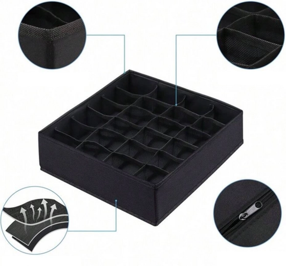 Praktyczny organizer do szuflady pomoże okiełznać chaos w komodzie i szafie. Dzięki 24 oddzielnym komórkom łatwo posegregujesz bieliznę, a każdy element będzie miał swoje miejsce. Wzmocnione ścianki utrzymują kształt i ułatwiają użytkowanie, a oddychająca włóknina zapewnia cyrkulację powietrza.