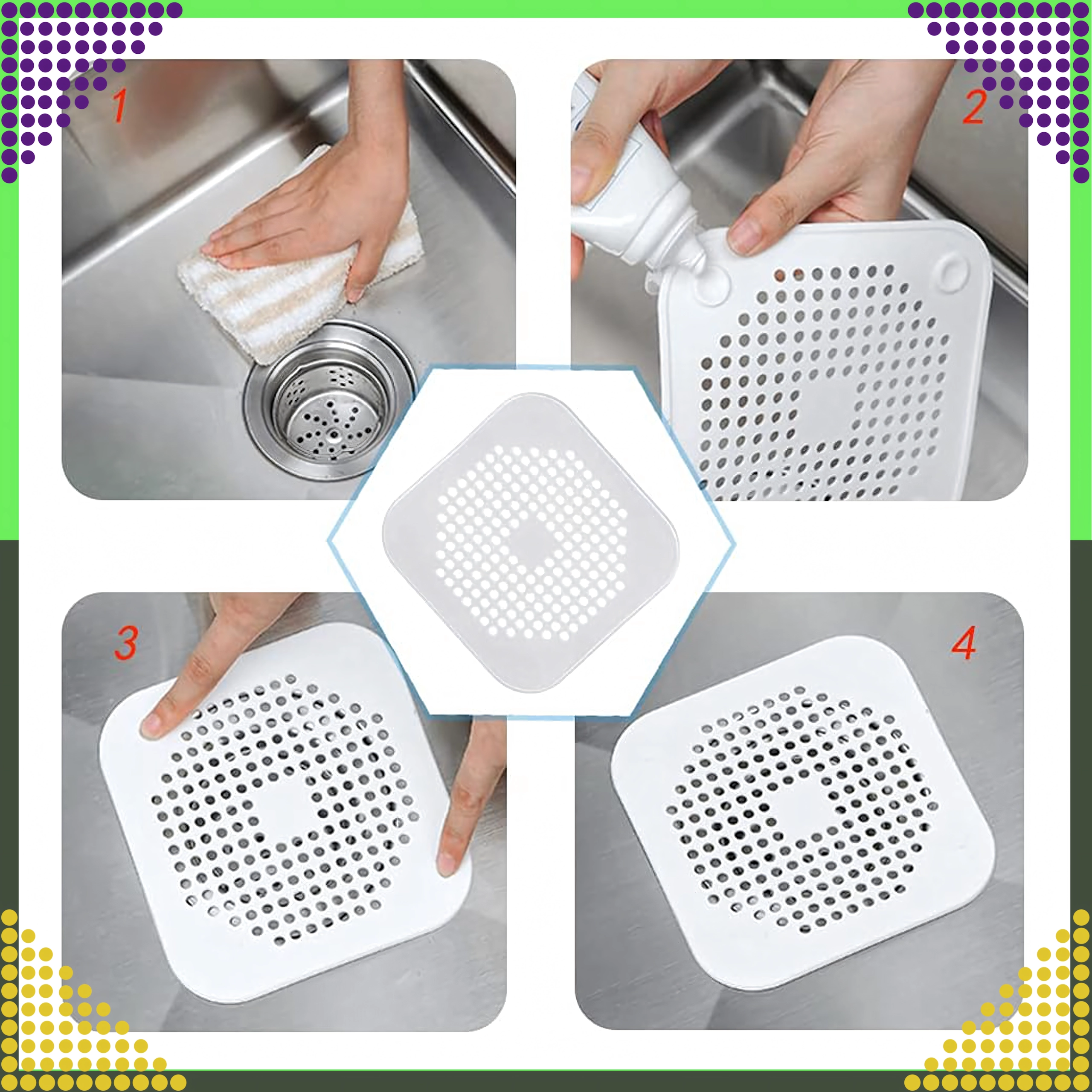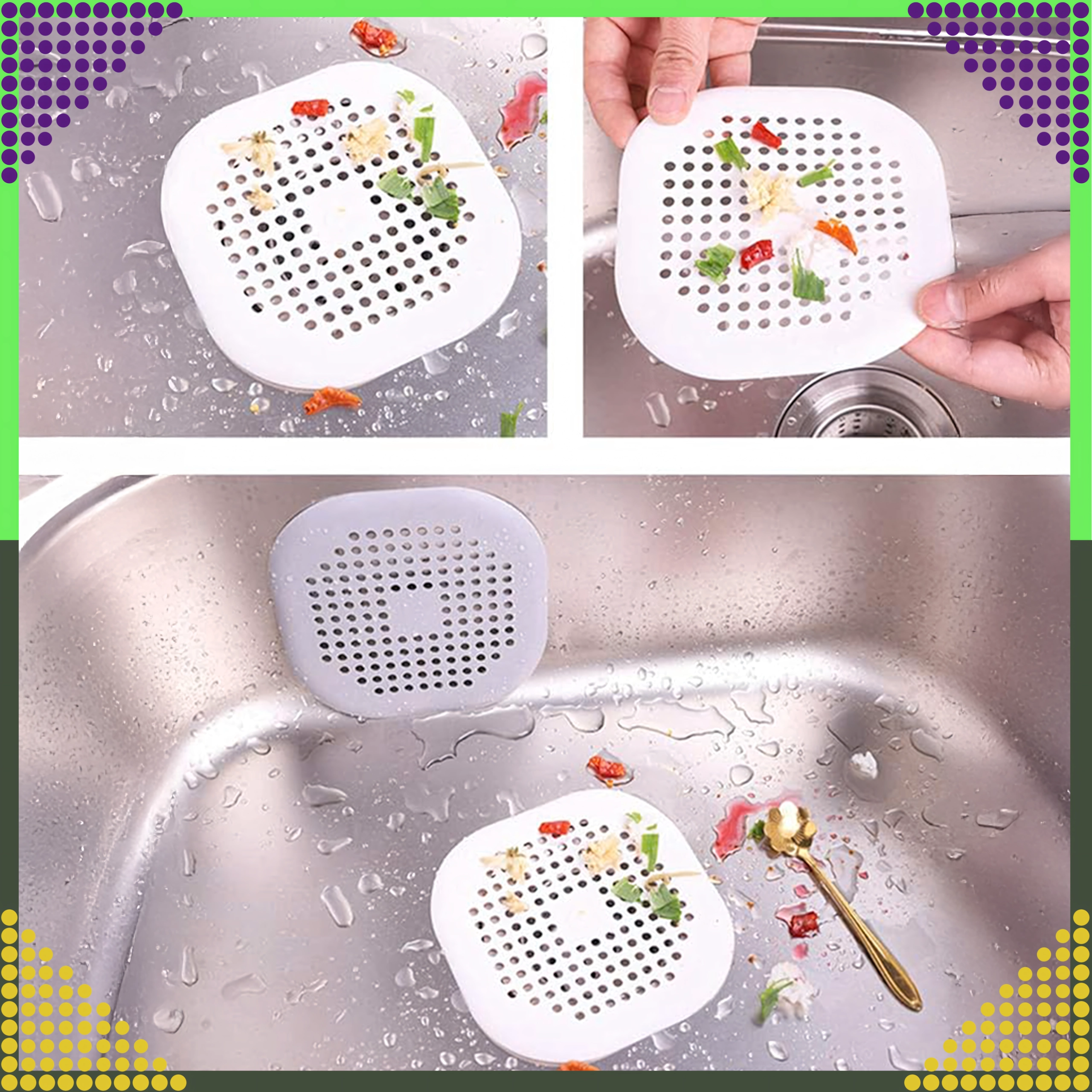 Uniwersalne silikonowe sitko na odpływ niezawodnie zatrzymuje włosy i resztki jedzenia, aby zapobiec zatykaniu zlewu, wanny i umywalki. Dzięki elastycznemu silikonowi doskonale przylega do powierzchni, łatwo się czyści i w kilka sekund umieścisz je na odpływie. Idealne do codziennego użytku w kuchni i łazience.