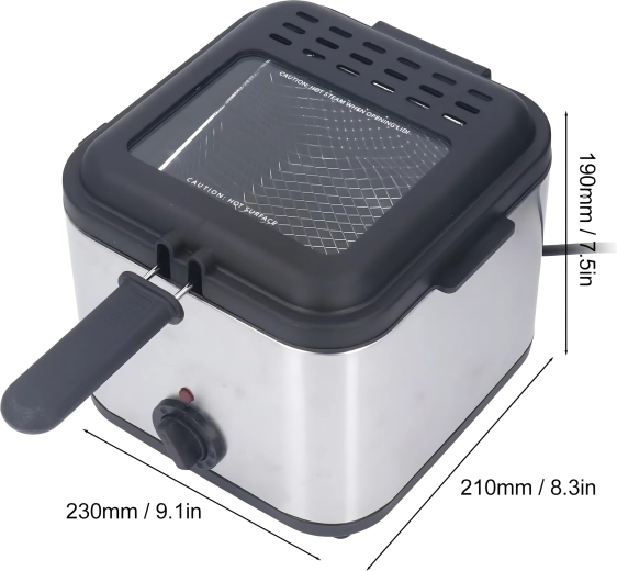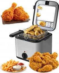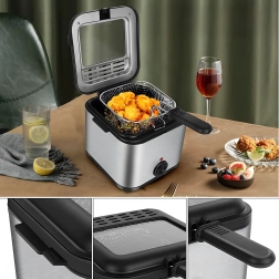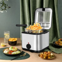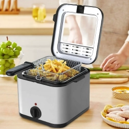 Kompaktowa frytownica olejowa o pojemności 2,5 l do domowego smażenia oferuje szybkie i równomierne przygotowanie chrupiących frytek, ryb i innych przysmaków. Dzięki regulowanemu termostatowi, okienku podglądowemu i mocy 1000 W masz smażenie pod kontrolą i osiągasz świetne rezultaty przy minimalnym wysiłku.