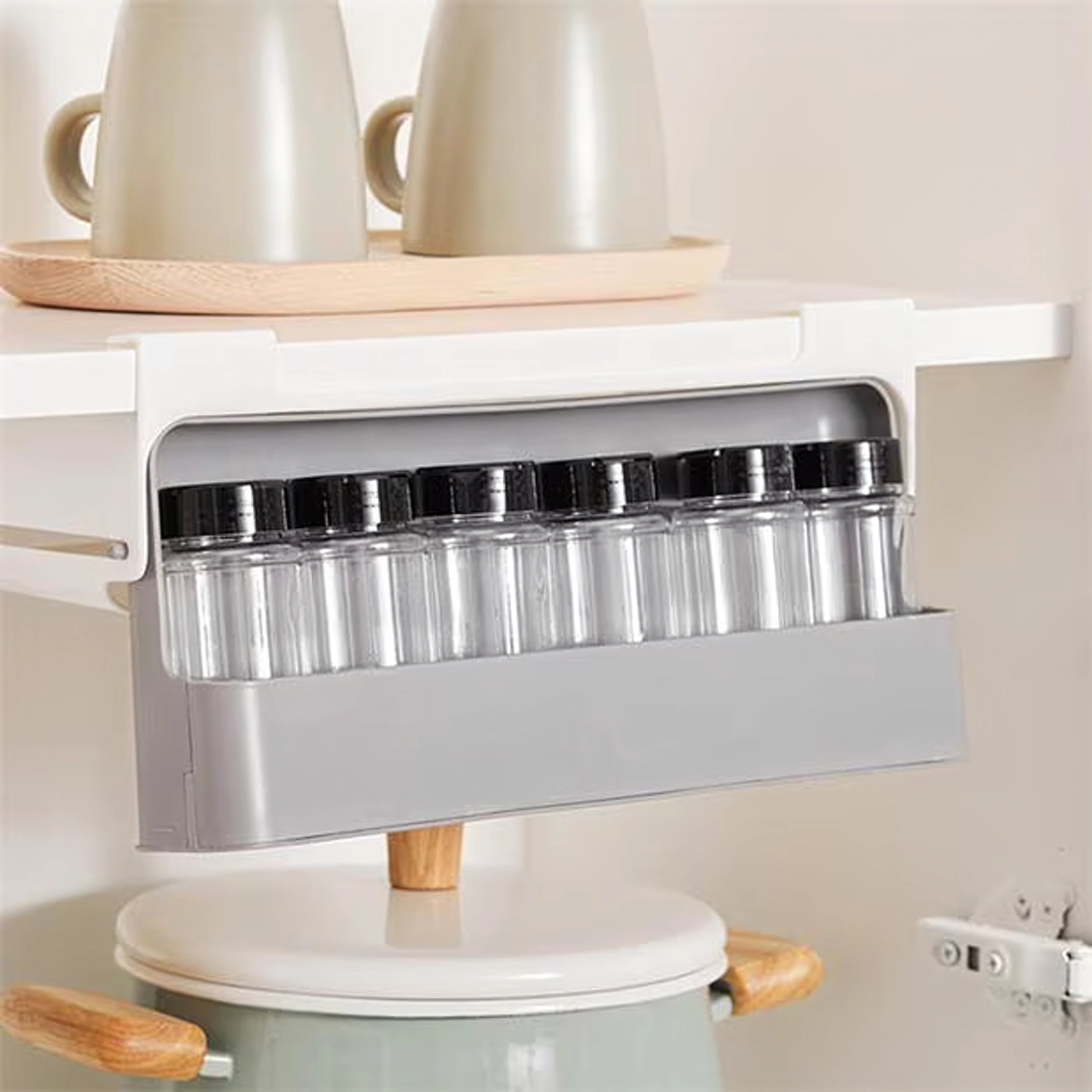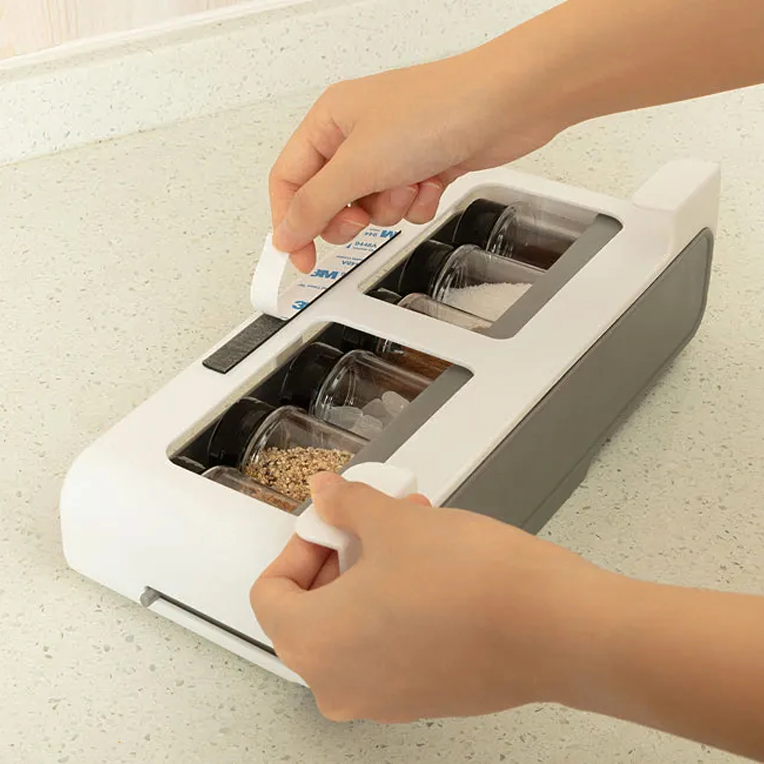 Utrzymaj porządek w kuchni i oszczędź miejsce dzięki wsuwanemu organizerowi na przyprawy na 6 przezroczystych słoiczków, montowanemu bez wiercenia za pomocą taśmy samoprzylepnej 3M. Szybki dostęp, kompaktowa konstrukcja i kompatybilność z większością półek i szafek sprawiają, że to idealny wybór do każdej kuchni.