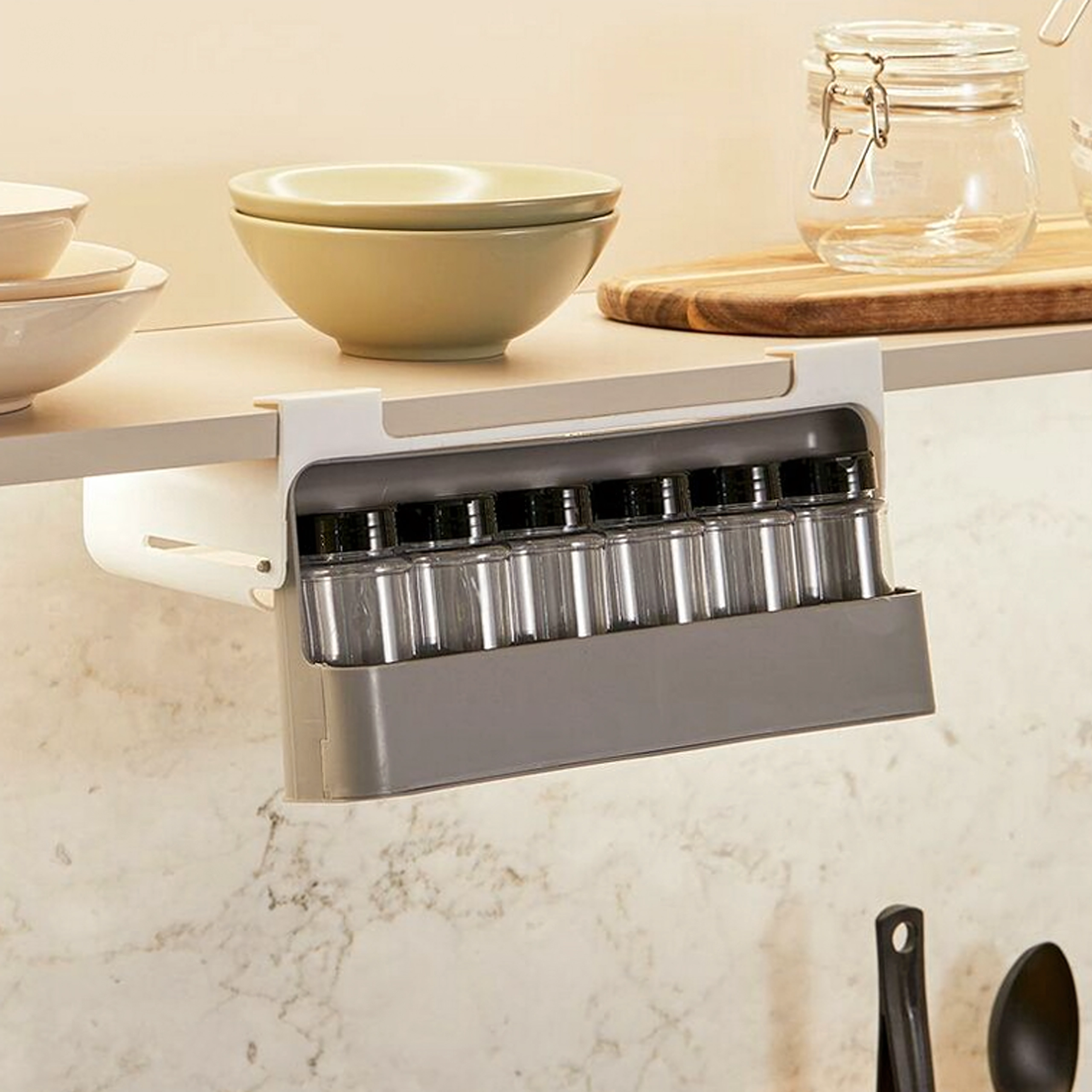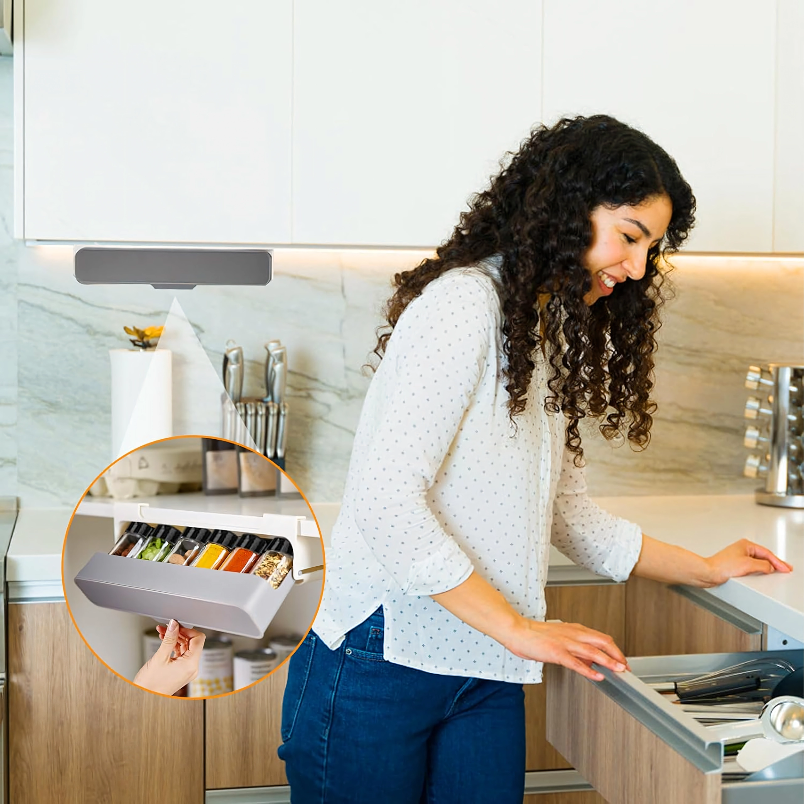Praktyczny podwieszany organizer na przyprawy pozwala mieć ulubione przyprawy zawsze pod ręką, a jednocześnie zwalnia miejsce na blacie. Dzięki przejrzystej, wysuwanej konstrukcji łatwo wysuniesz listwę ze słoiczkami i od razu zobaczysz to, czego potrzebujesz. Samoprzylepny montaż z taśmą 3M zapewnia solidne mocowanie bez wiercenia i bez uszkadzania mebli.