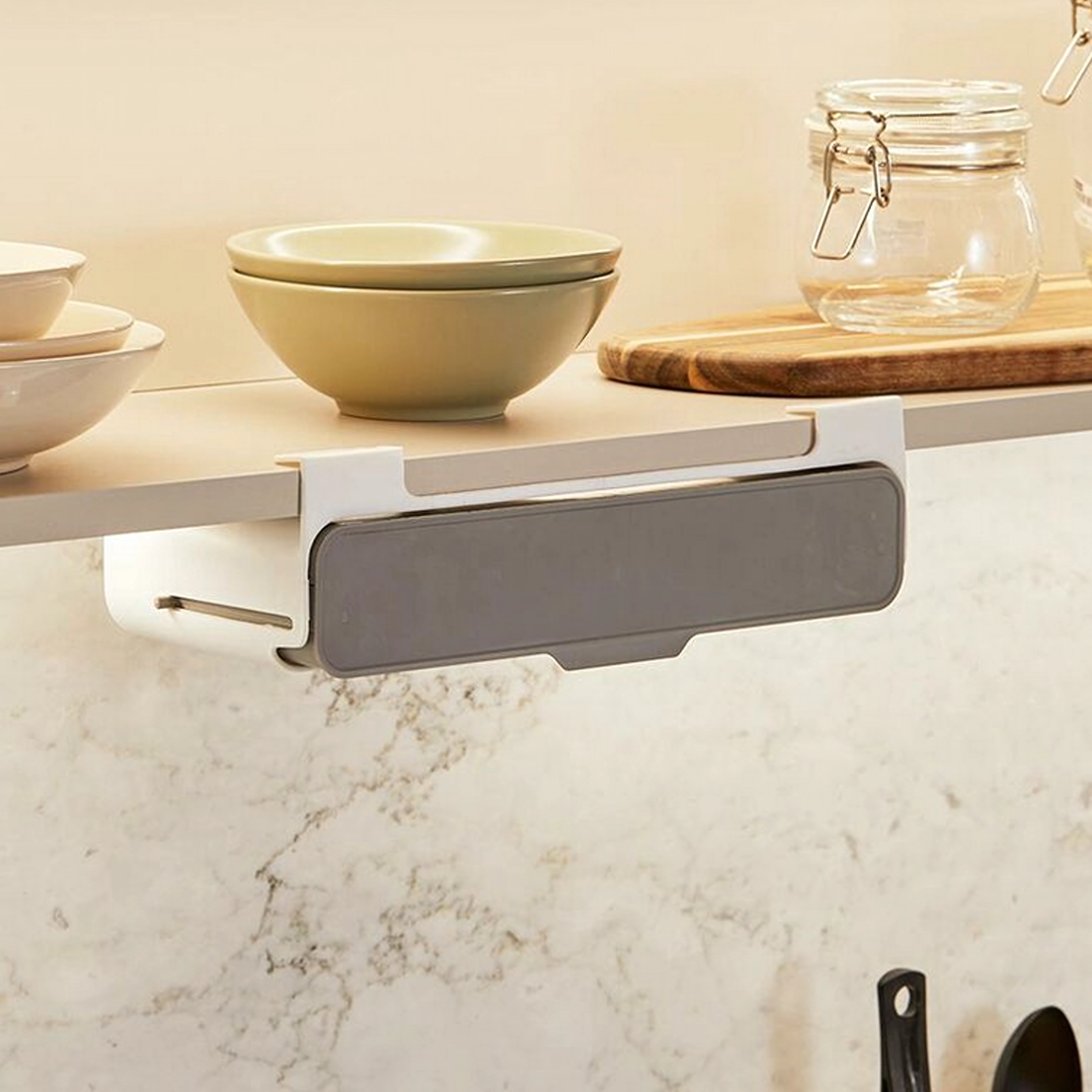 Mocna taśma samoprzylepna 3M solidnie utrzymuje organizer pod półką lub w szafce. Instalacja zajmuje kilka minut i nie wymaga narzędzi ani wiercenia.