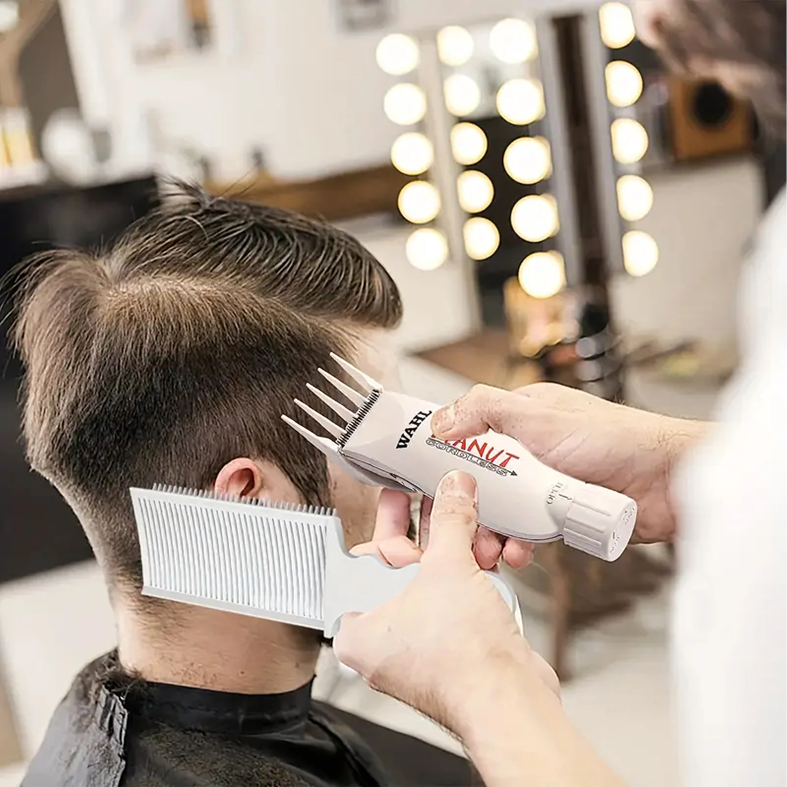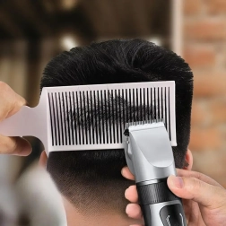 Drobne i średnie zęby grzebienia pewnie prowadzą włosy podczas pracy maszynką i nożyczkami, dzięki czemu uzyskasz równomierne cięcie i płynne przejścia.