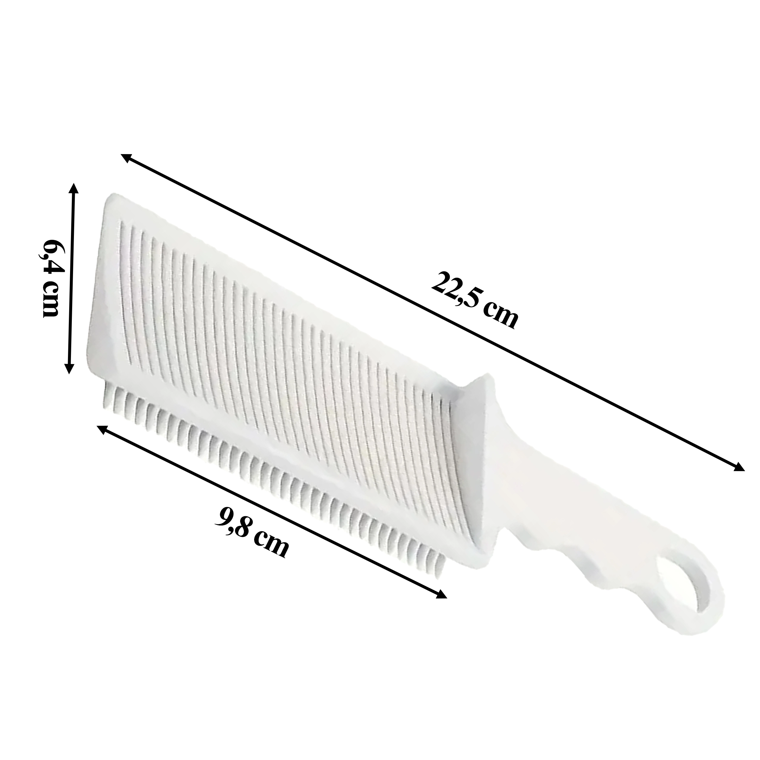 Lekka i wytrzymała konstrukcja z wysokiej jakości plastiku jest wygodna w dłoni, łatwa w utrzymaniu i nadaje się do codziennej pracy w barbershopie oraz do domowej stylizacji. Praktyczne oczko do zawieszenia i ergonomiczne profilowanie gwarantują pewny chwyt i komfortową obsługę.