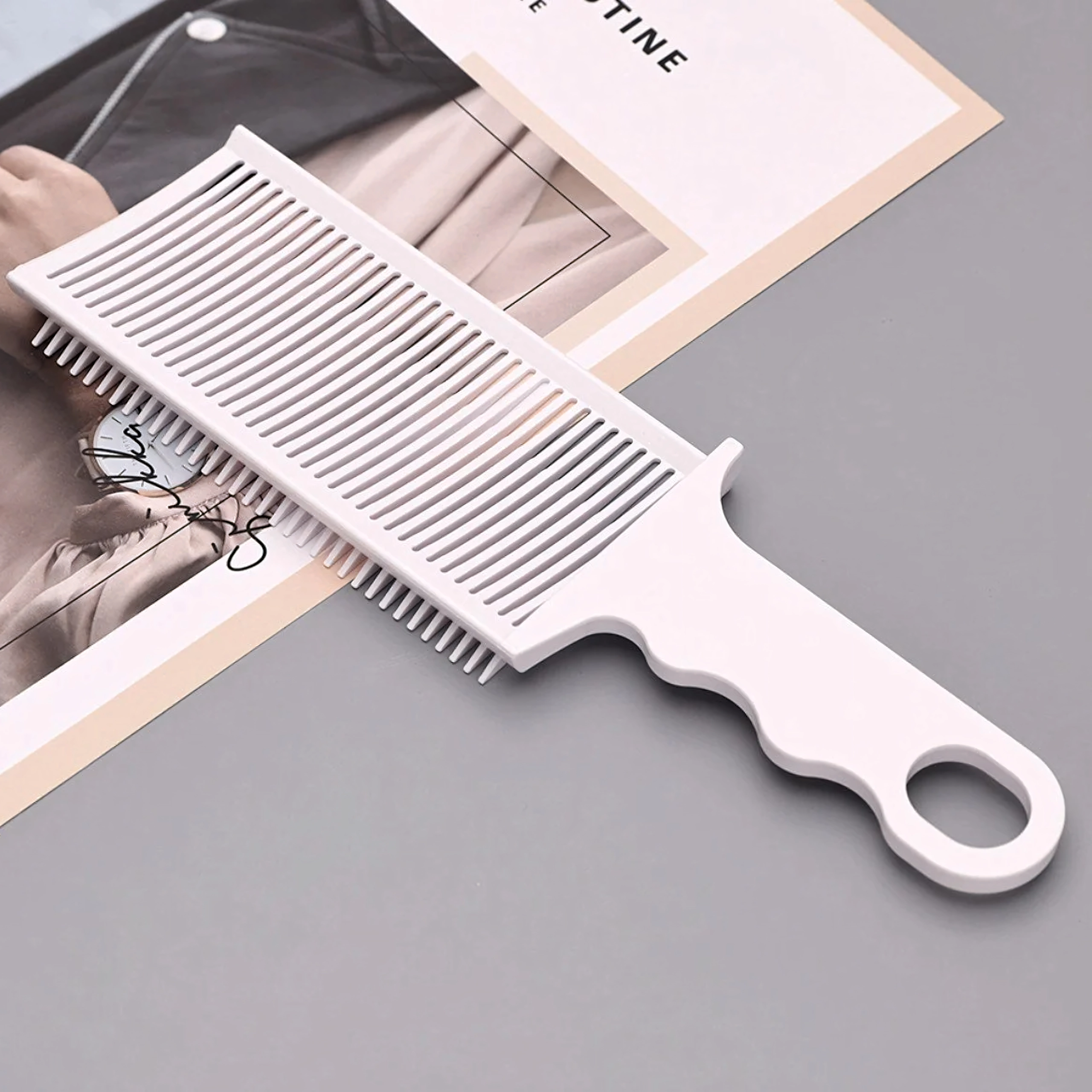 Szukasz niezawodnego grzebienia do precyzyjnych cięć i idealnych przejść? Ten profesjonalny biały grzebień fryzjerski z ergonomiczną rączką oferuje doskonałą kontrolę podczas pracy nożyczkami i maszynką. Drobne i średnie zęby pomagają dokładnie sekcjonować i prowadzić włosy, co pozwala uzyskać czyste linie i gładkie przejścia.