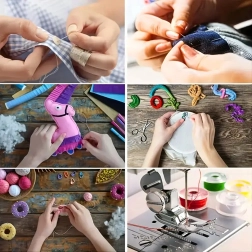 - Kolorowe nici, igły, nawlekacze, nożyczki, prujka, miara krawiecka, naparstki, szpilki, klipsy, guziki i inne akcesoria