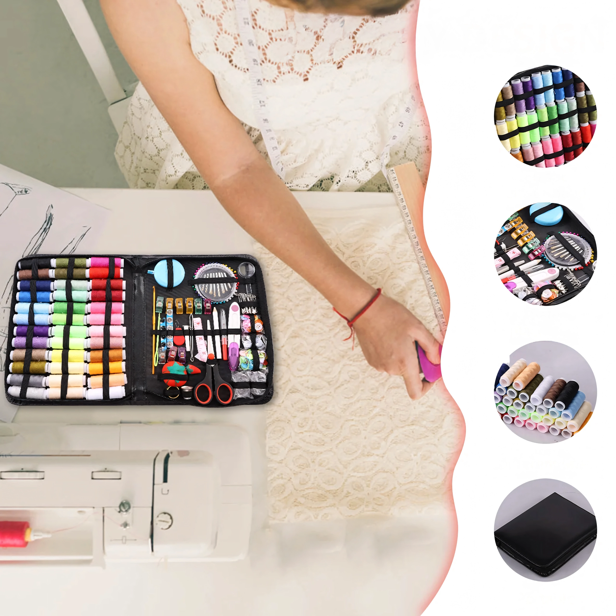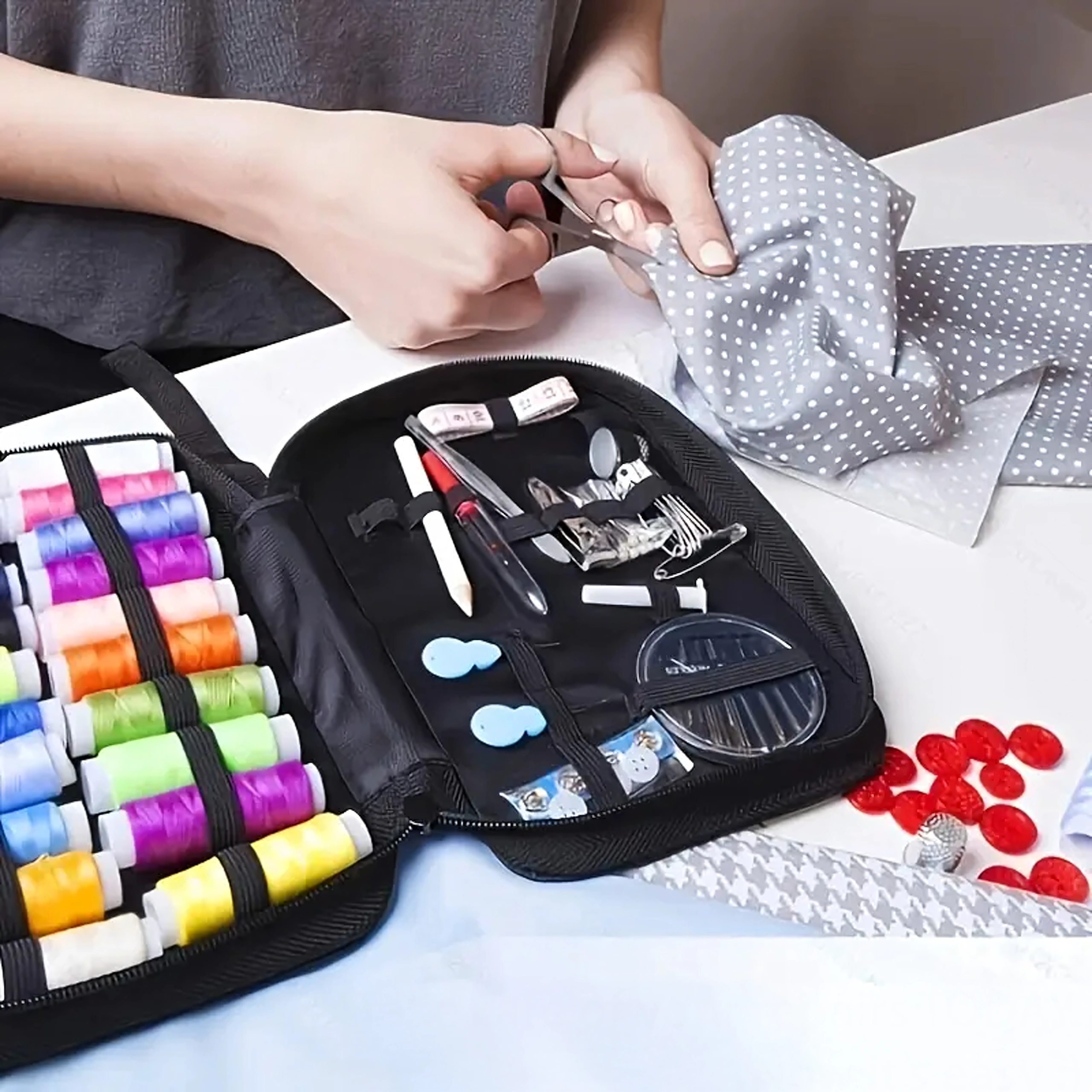 - Kompletny zestaw do szycia w przenośnym etui na zamek