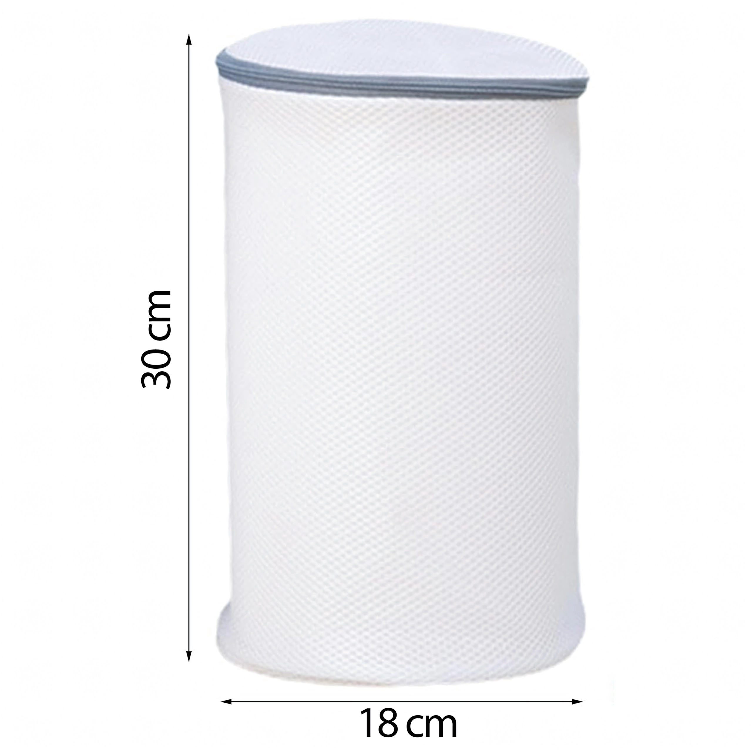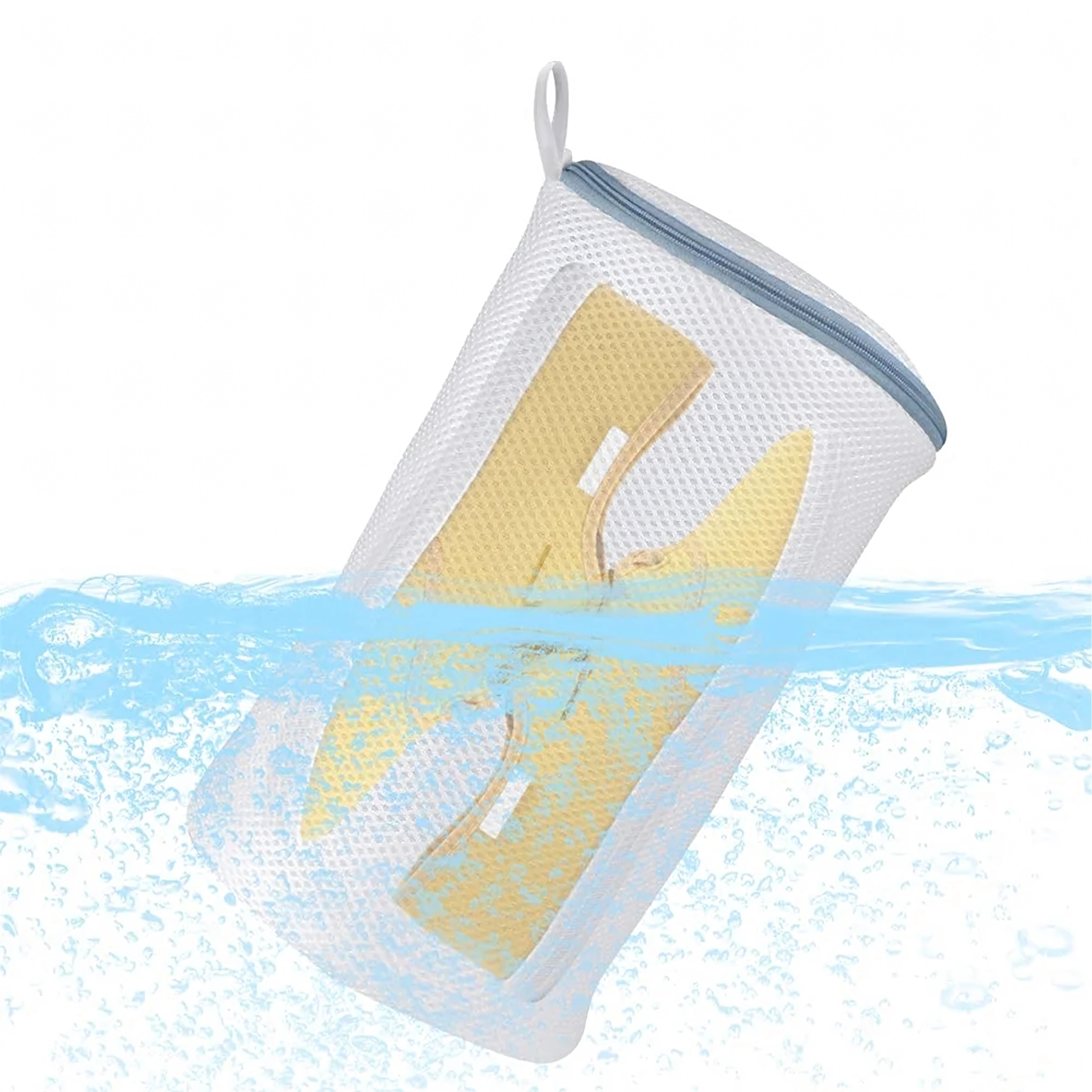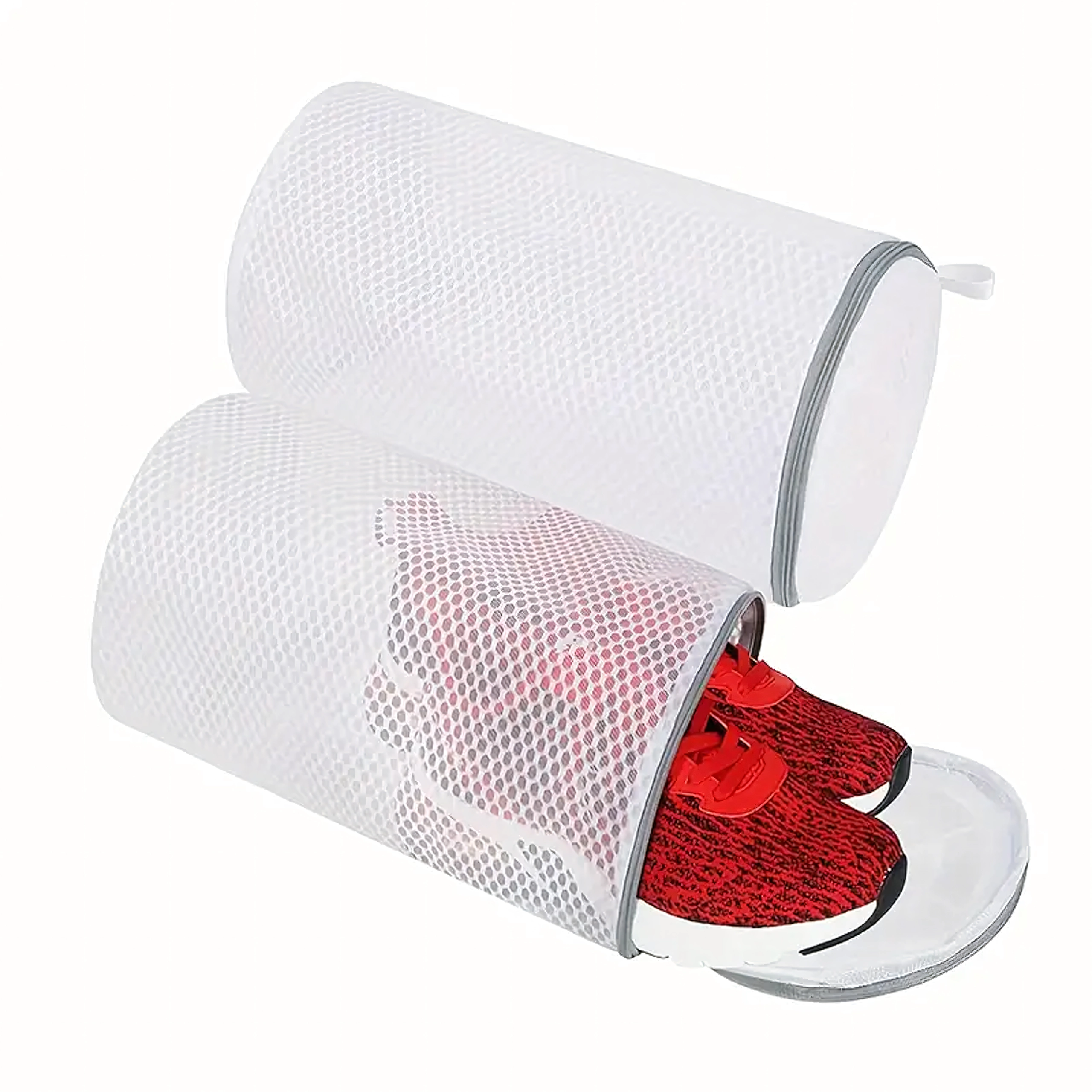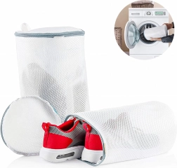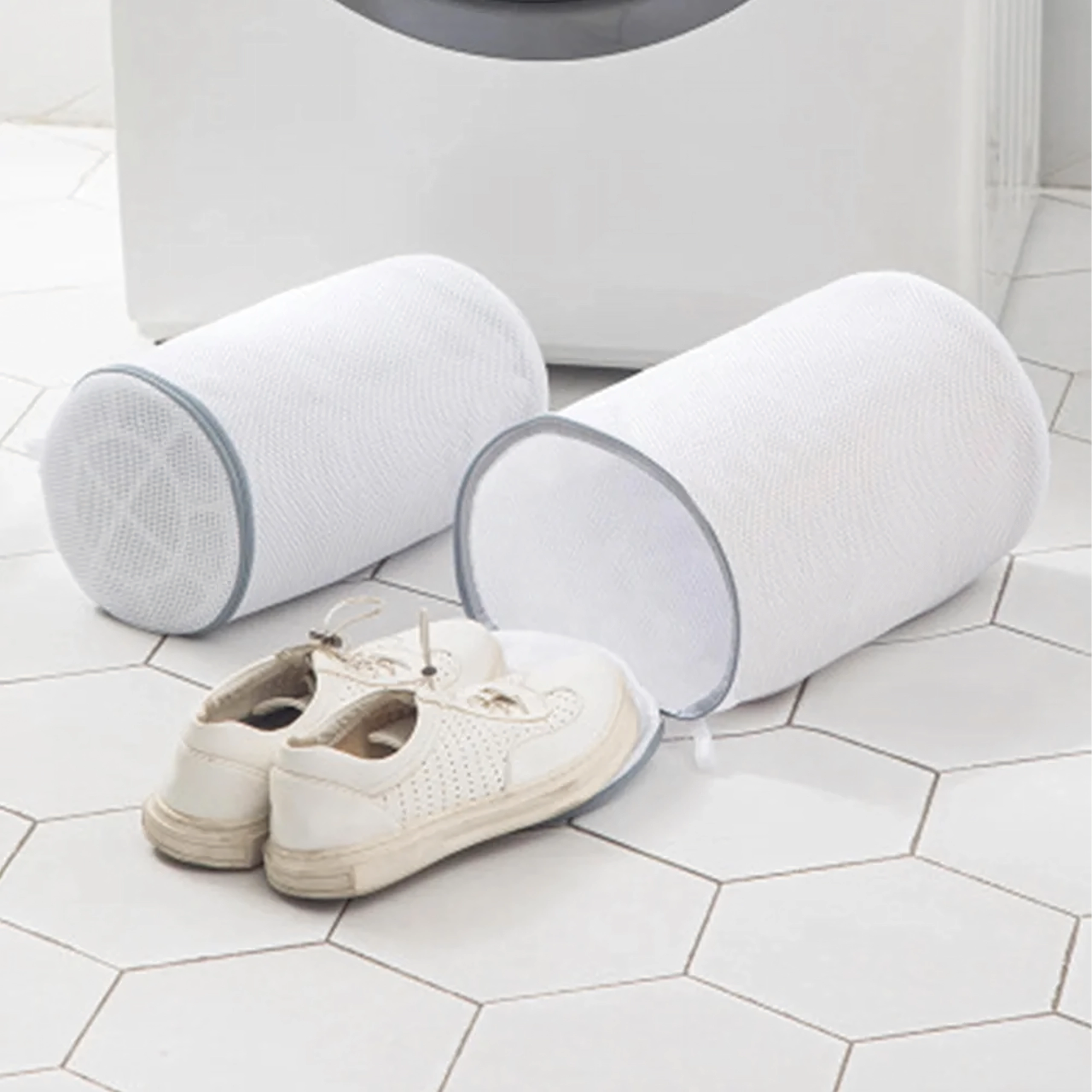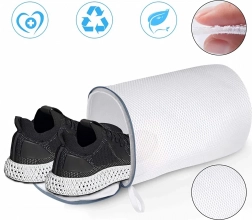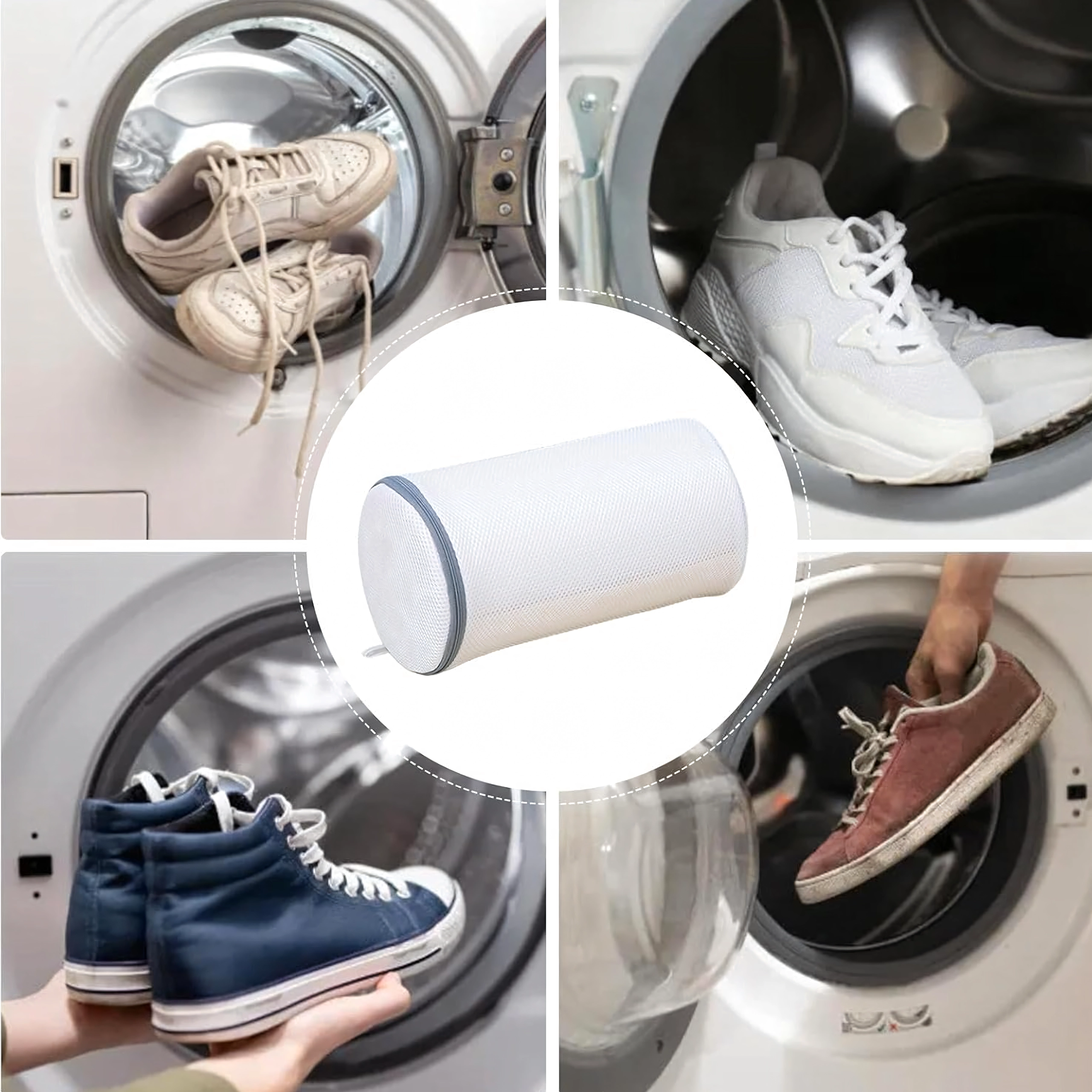Ten cylindryczny worek z przewiewnej siatki umożliwia skuteczną cyrkulację wody i detergentu, a jednocześnie chroni obuwie przed przetarciami oraz pralkę przed uderzeniami podeszw. Zamknięcie na zamek pewnie utrzymuje buty w środku i zmniejsza ryzyko splątania sznurowadeł.