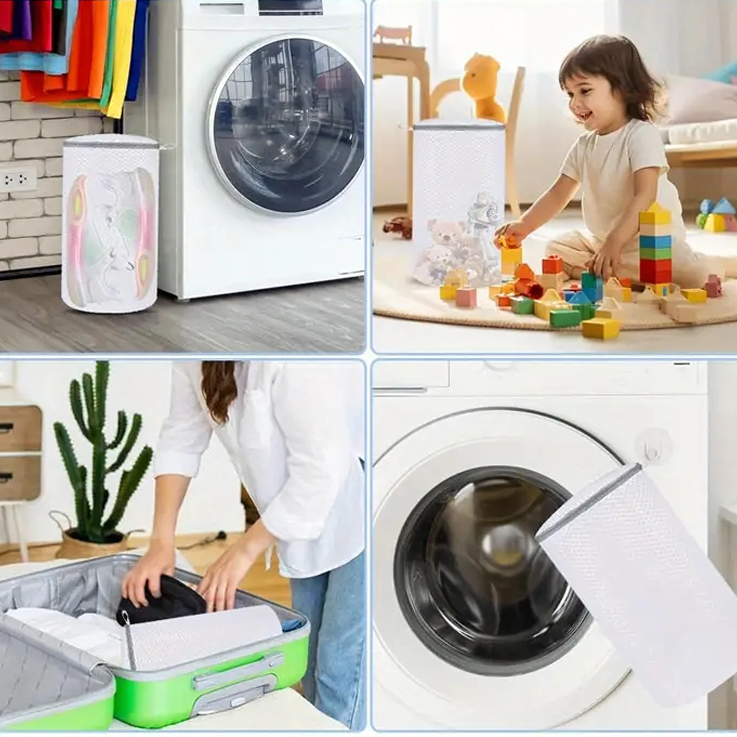 Kompaktowe 30 × 18 cm mieszczą się w większości pralek i sprawdzają się także jako organizer podróżny, który trzyma obuwie z dala od ubrań.