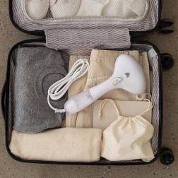Lekki, poręczny i łatwy do przenoszenia. Mieści się w walizce i jest gotowy do szybkich poprawek ubrań w dowolnym miejscu w podróży.