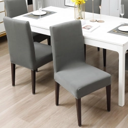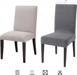 Praktyczne i eleganckie pokrowce na siedziska natychmiast odświeżą wygląd starszych krzeseł i wydłużą ich żywotność. Elastyczny materiał (90% poliester, 10% elastan) zapewni ciasne otulenie siedziska bez zagnieceń i bez konieczności prasowania. W uniwersalnym szarym kolorze łatwo dopasujesz je do większości wnętrz – od jadalni po biuro.