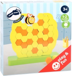 Motoryczna gra zręcznościowa ul pszczeli Small Foot zamieni każdy dzień w radosne wyzwanie. Pszczółka siedzi na górnej krawędzi ula, a gracze na zmianę wyciągają drewniane komórki tak, aby utrzymać równowagę. Kto potrafi najdłużej utrzymać pszczółkę w ulu, wygrywa!