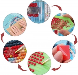 Kompletny zestaw 5D 30 × 30 cm jest gotowy do natychmiastowego tworzenia: wystarczy wsypać koraliki do tacki, nabrać je aplikatorem z woskiem i precyzyjnie umieścić zgodnie z symbolami. Ta czynność redukuje stres, rozwija cierpliwość i motorykę małą i jest odpowiednia dla dzieci oraz dorosłych.