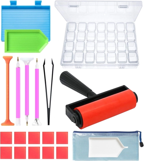 Twórz świetliste obrazy z kompletnym zestawem narzędzi do diamond paintingu. Dzięki precyzyjnemu wałkowi osiągniesz równomierne dociśnięcie i gładką powierzchnię bez odstających kamyczków. Tacki z rowkami i aplikatory wielogłowicowe przyspieszają pracę oraz poprawiają dokładność rozmieszczenia.