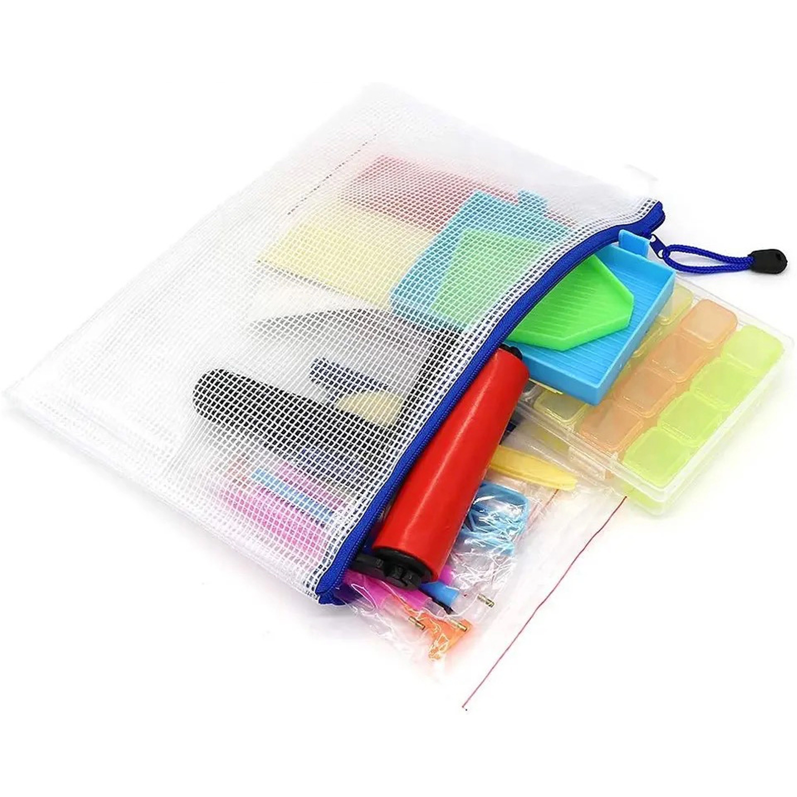 Przezroczyste siatkowe etui na zamek oraz pudełko z przegródkami utrzymują wszystko w ładzie i gotowe do tworzenia w dowolnym miejscu.