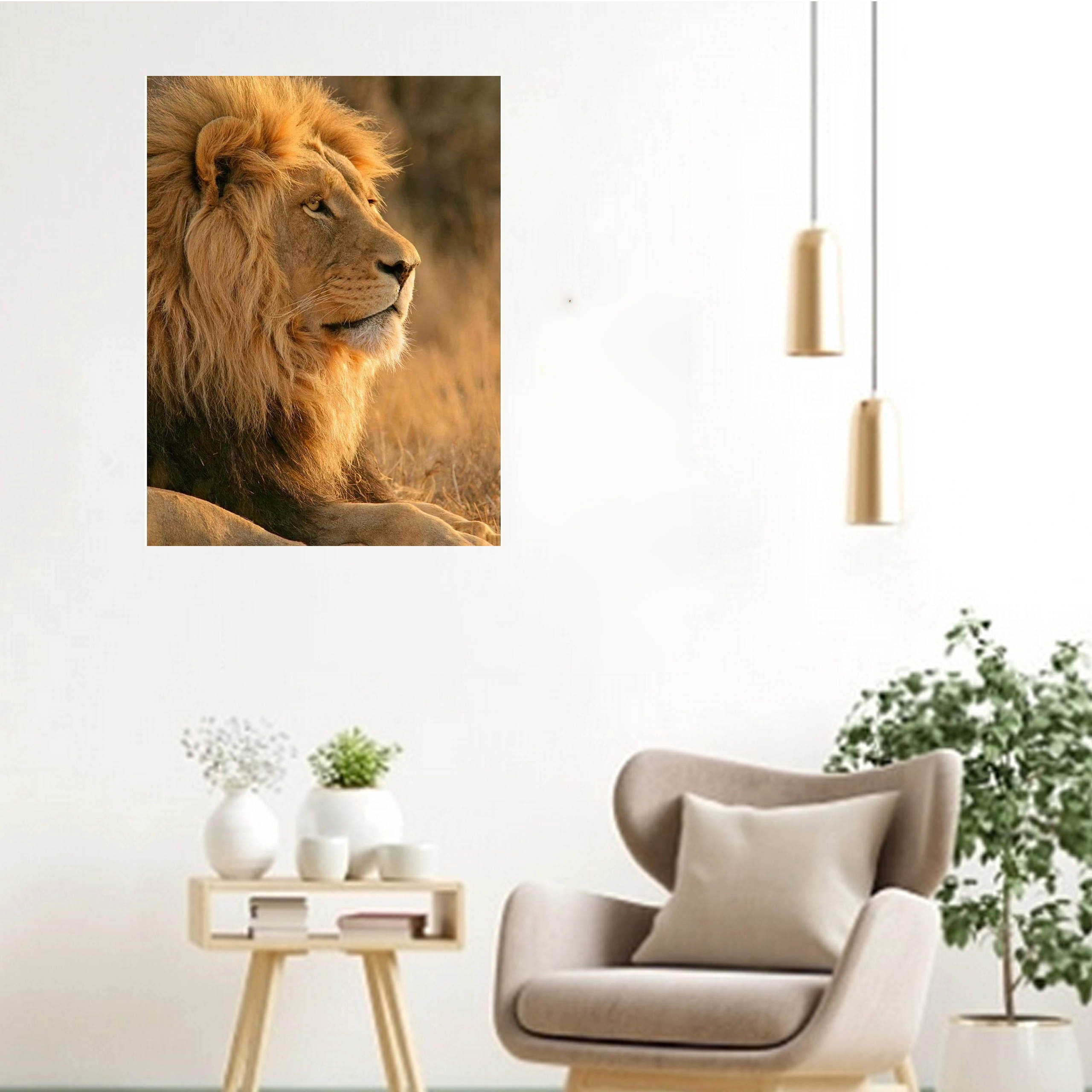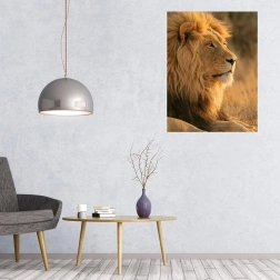Elegancki motyw lwa na płótnie 40 × 50 cm jest naciągnięty na drewnianej ramie, więc gotowy obraz łatwo wyeksponujesz.