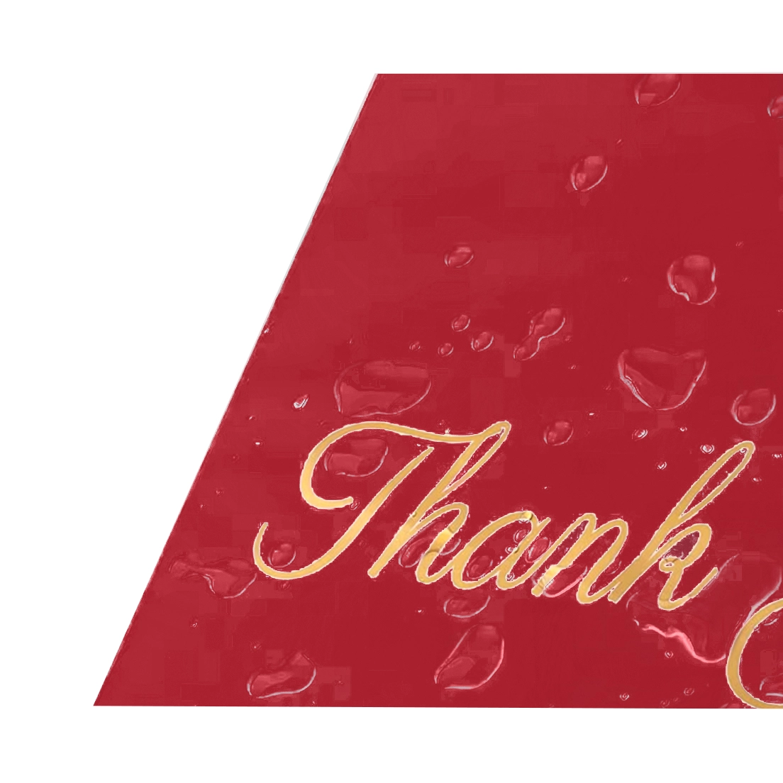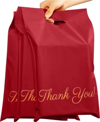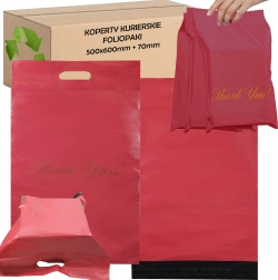 Praktyczne i wytrzymałe torby kurierskie z LDPE z wycięciem na uchwyt ułatwiają przenoszenie przesyłek. Oferują bezpieczne, samoprzylepne zamknięcie, ochronę przed wilgocią i kurzem oraz elegancki czerwony design z nadrukiem Thank You. Opakowanie zawiera 50 szt. w rozmiarze 500 × 600 + 70 mm (uchwyt).