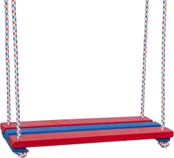 Ta drewniana huśtawka w wesołych barwach dostarczy wiele radości dzieciom i dorosłym. Dzięki solidnemu drewnianemu siedzisku jest wygodna, stabilna i bezpieczna do codziennego bujania w domu i w ogrodzie.