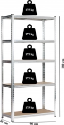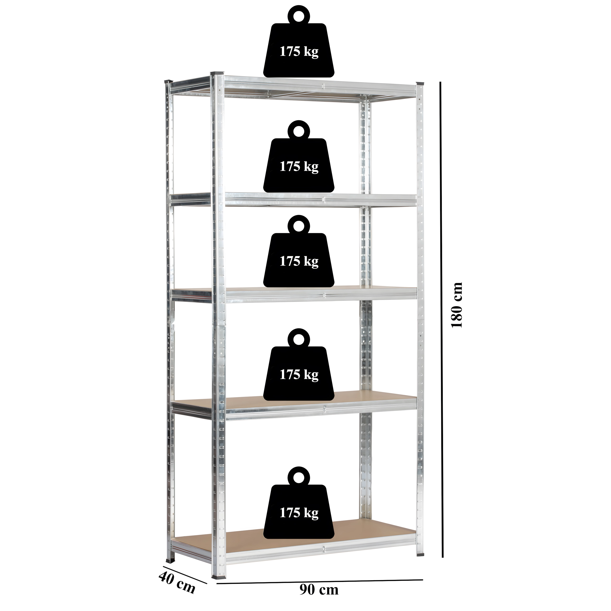 Każda półka wytrzymuje do 175 kg, co zapewnia wysoką wytrzymałość nawet przy składowaniu ciężkich przedmiotów i paczek. Idealny do garaży, warsztatów i magazynów.