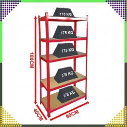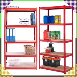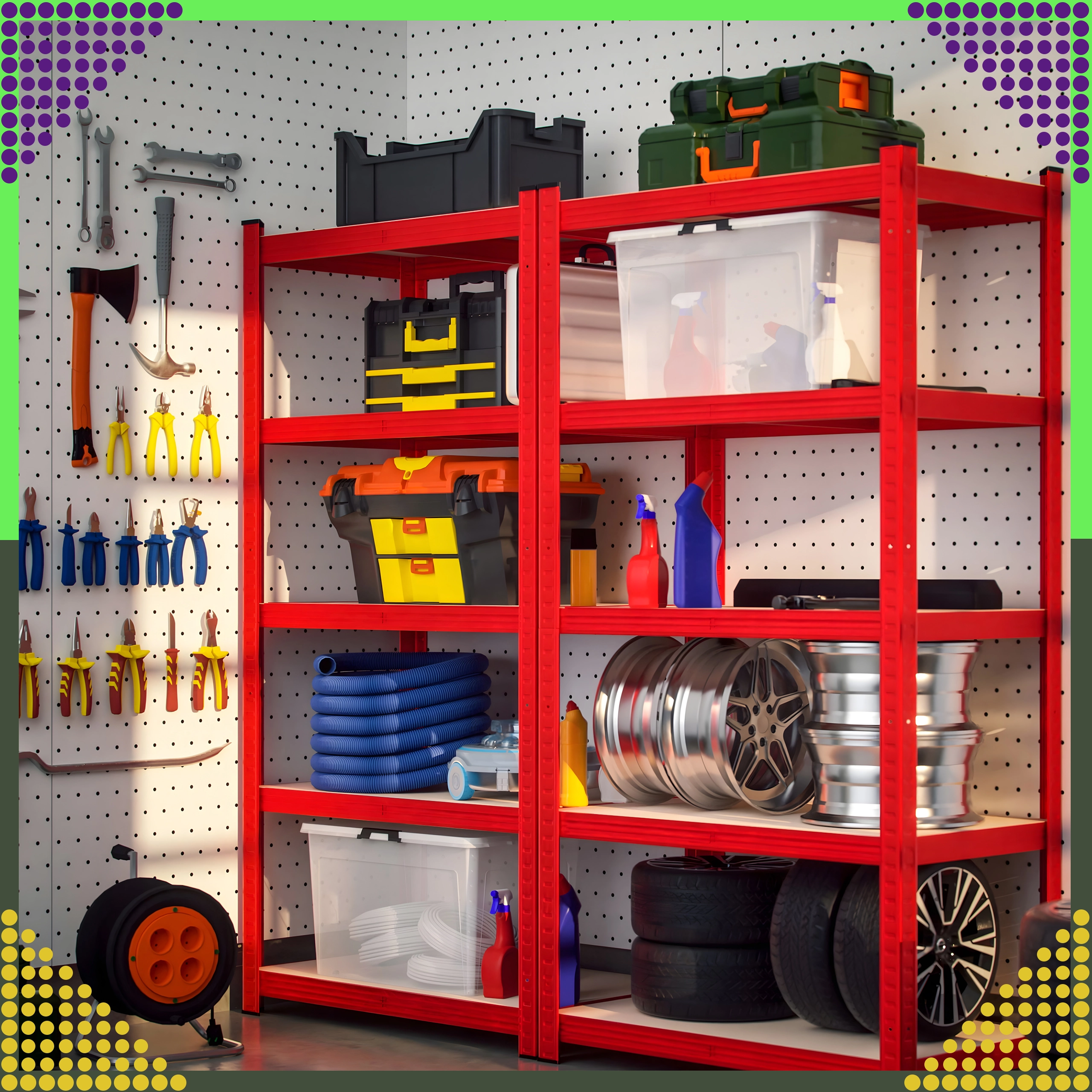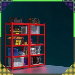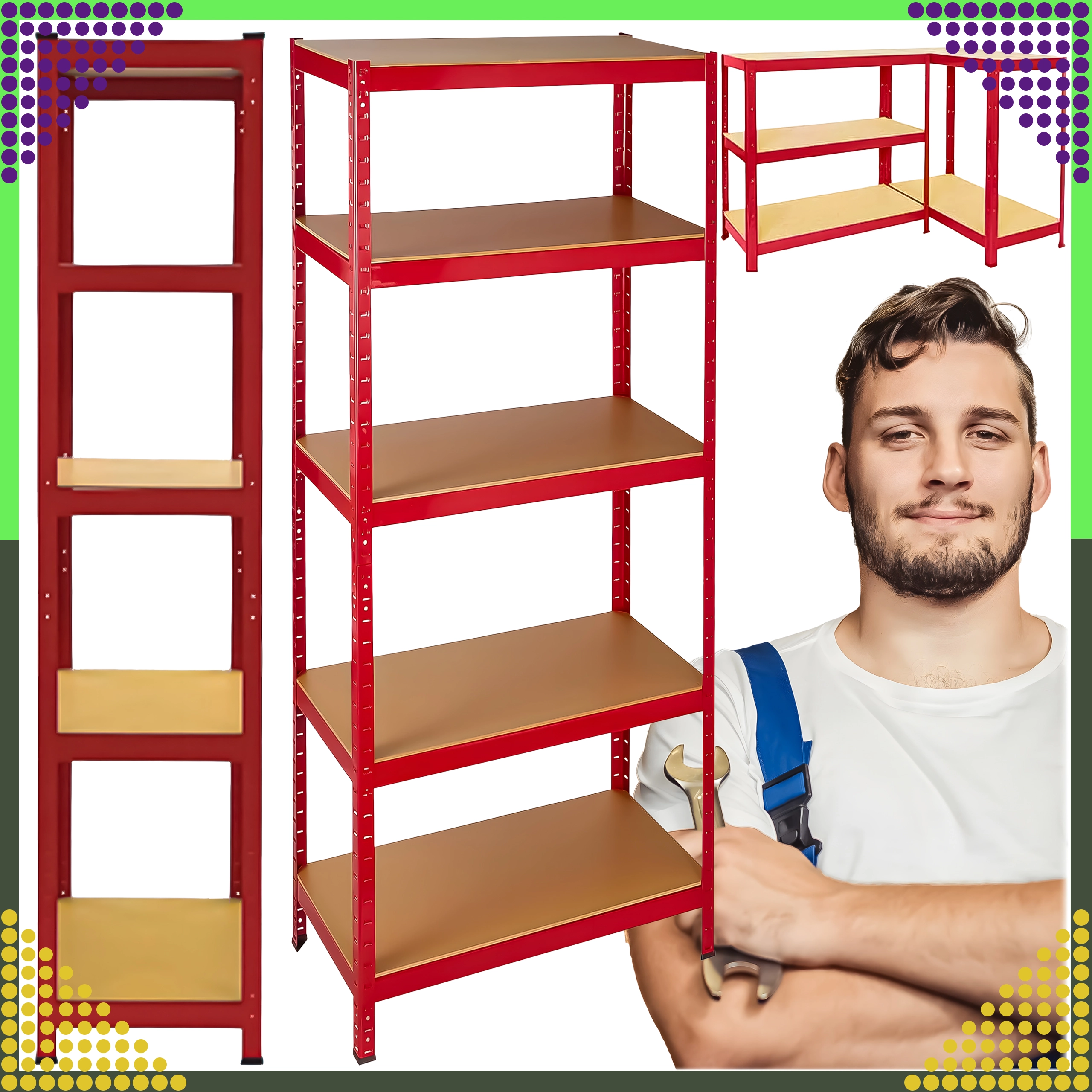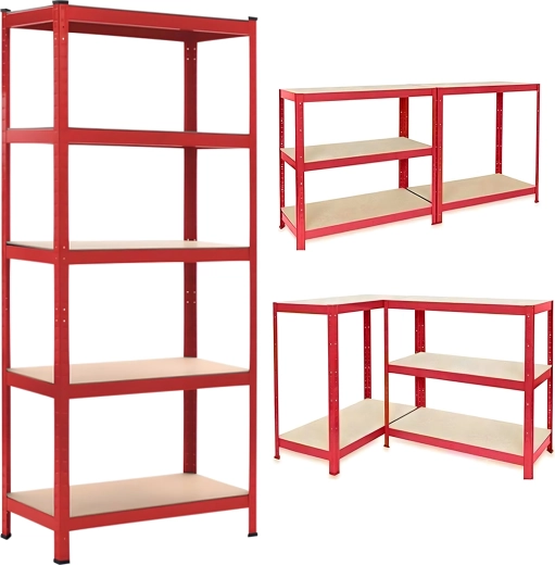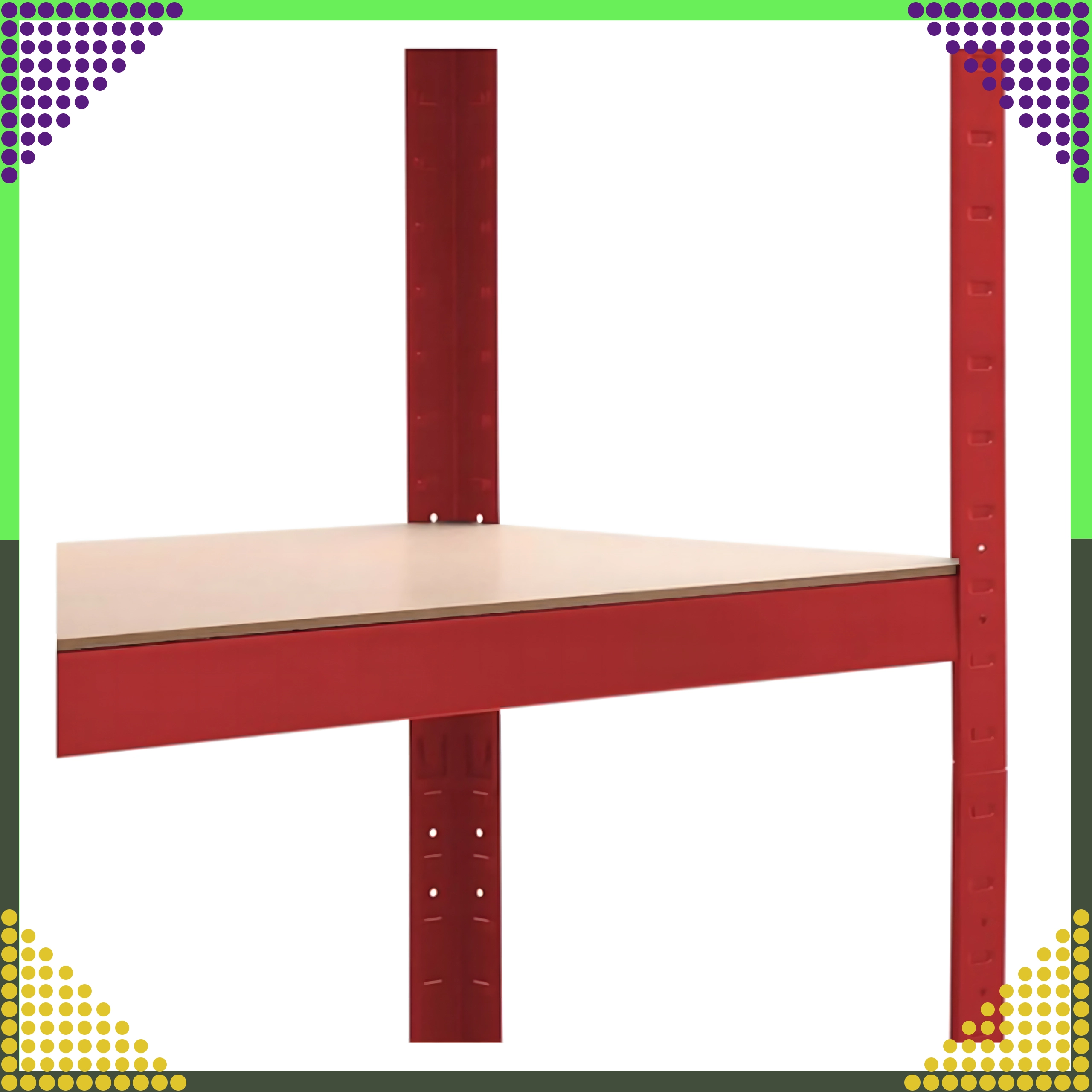 Stabilny stalowy regał w eleganckim czerwonym kolorze jest idealny do garaży, piwnic, warsztatów, magazynów i domowych archiwów. Dzięki regulowanym półkom łatwo dopasujesz wysokość poziomów przechowywania do swoich potrzeb i efektywnie wykorzystasz przestrzeń pionową.