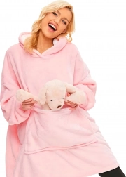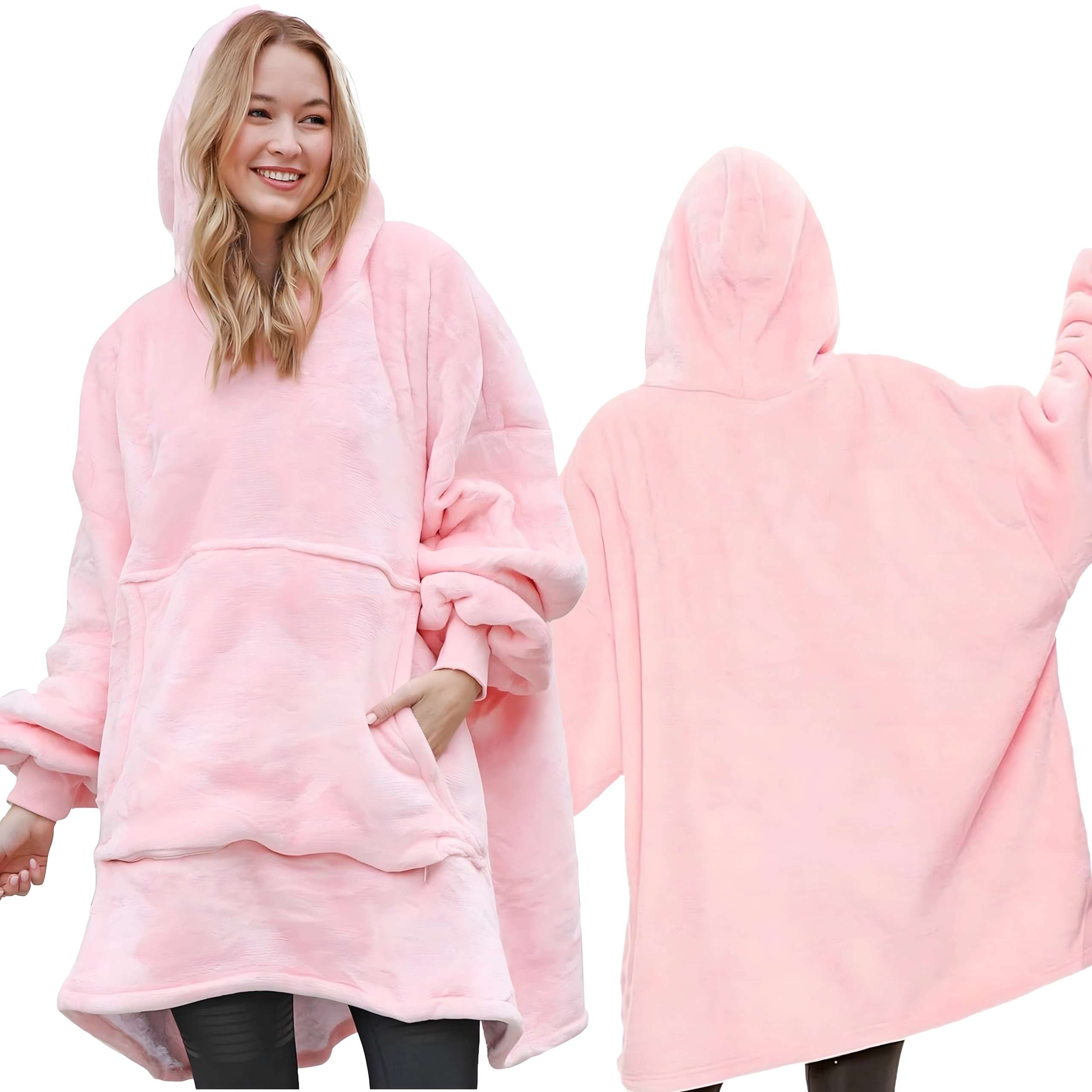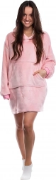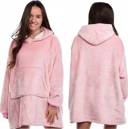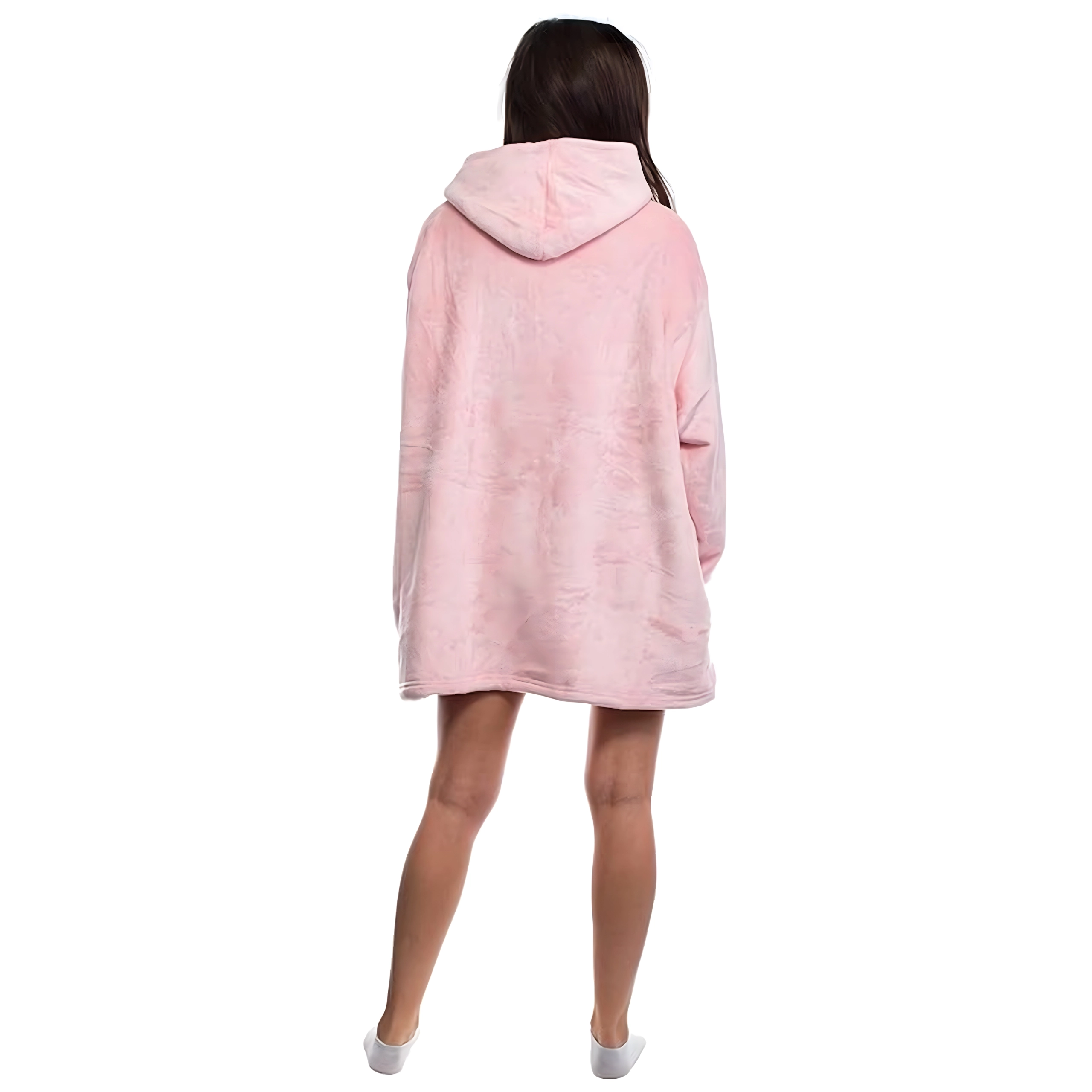 Dzięki uniwersalnemu rozmiarowi pasuje na większość sylwetek, duża kieszeń kangurka pomieści telefon, pilot i drobiazgi, a elastyczne mankiety trzymają rękawy na miejscu. Różowy kolor dodaje stylu i przytulności.