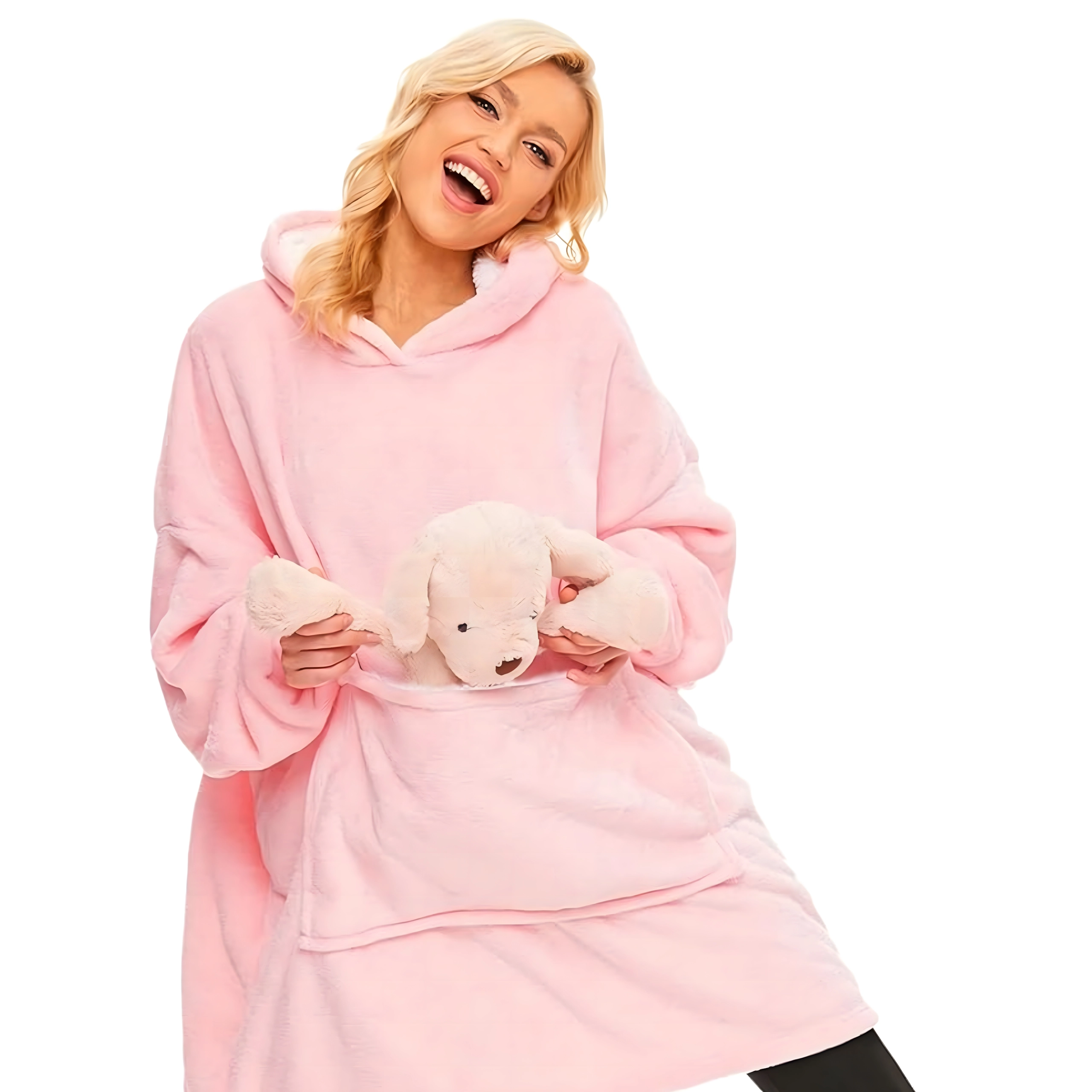 Grzejąca oversize bluza–koc łączy to, co najlepsze z koca i bluzy: pluszowy, bardzo miękki materiał, przestronny krój oraz kaptur dla dodatkowego ciepła. Idealna na chłodne dni, leniuchowanie na sofie, czytanie i pracę z domu.
