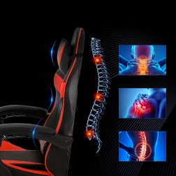 Ciesz się długimi godzinami grania i pracy w pełnym komforcie. Ten ergonomiczny fotel gamingowy łączy sportowy design, regulację wysokości, odchylane oparcie oraz wysuwany podnóżek dla maksymalnego relaksu. Dzięki wysokiemu oparciu, poduszce pod głowę i podparciu lędźwi zyskasz pewność prawidłowej postawy i wygodę nawet podczas całodziennego siedzenia.