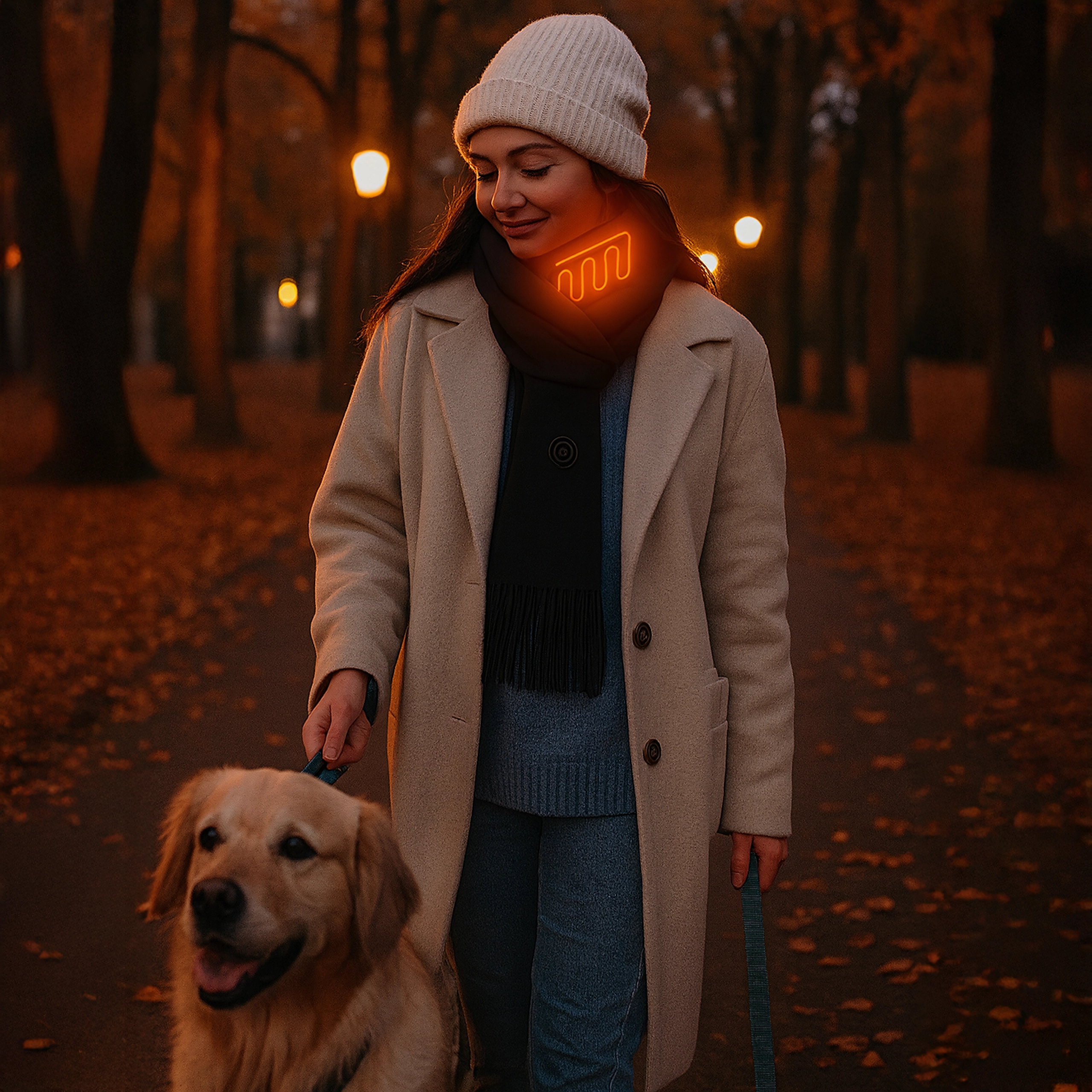 Podgrzewany szalik łączy nowoczesną technologię z komfortem. Zintegrowany element grzewczy w okolicy karku zapewnia ukierunkowane ciepło, które łagodzi chłód i sztywność. Dzięki zasilaniu przez USB i dołączonemu powerbankowi 5000 mAh możesz cieszyć się ciepłem wszędzie – bez gniazdka i bez ograniczeń.