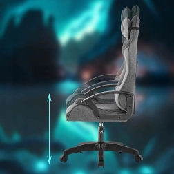 Tapicerka tekstylna jest przyjemna w dotyku i dobrze oddycha, dzięki czemu będziesz czuć się komfortowo nawet podczas dłuższych sesji. Stabilna podstawa z pięcioma kółkami porusza się gładko po podłodze, a solidna konstrukcja z udźwigiem 100 kg daje pewność i trwałość.