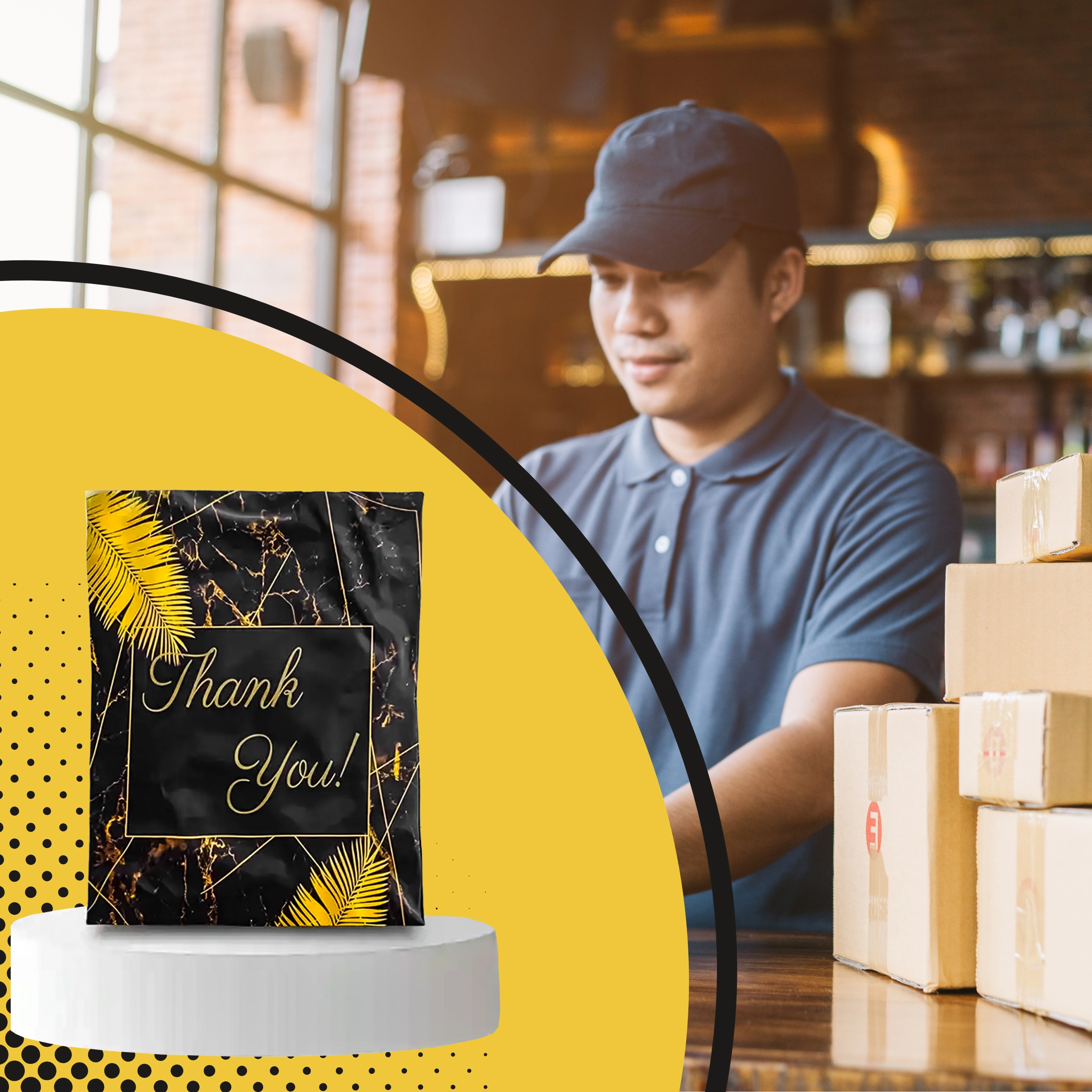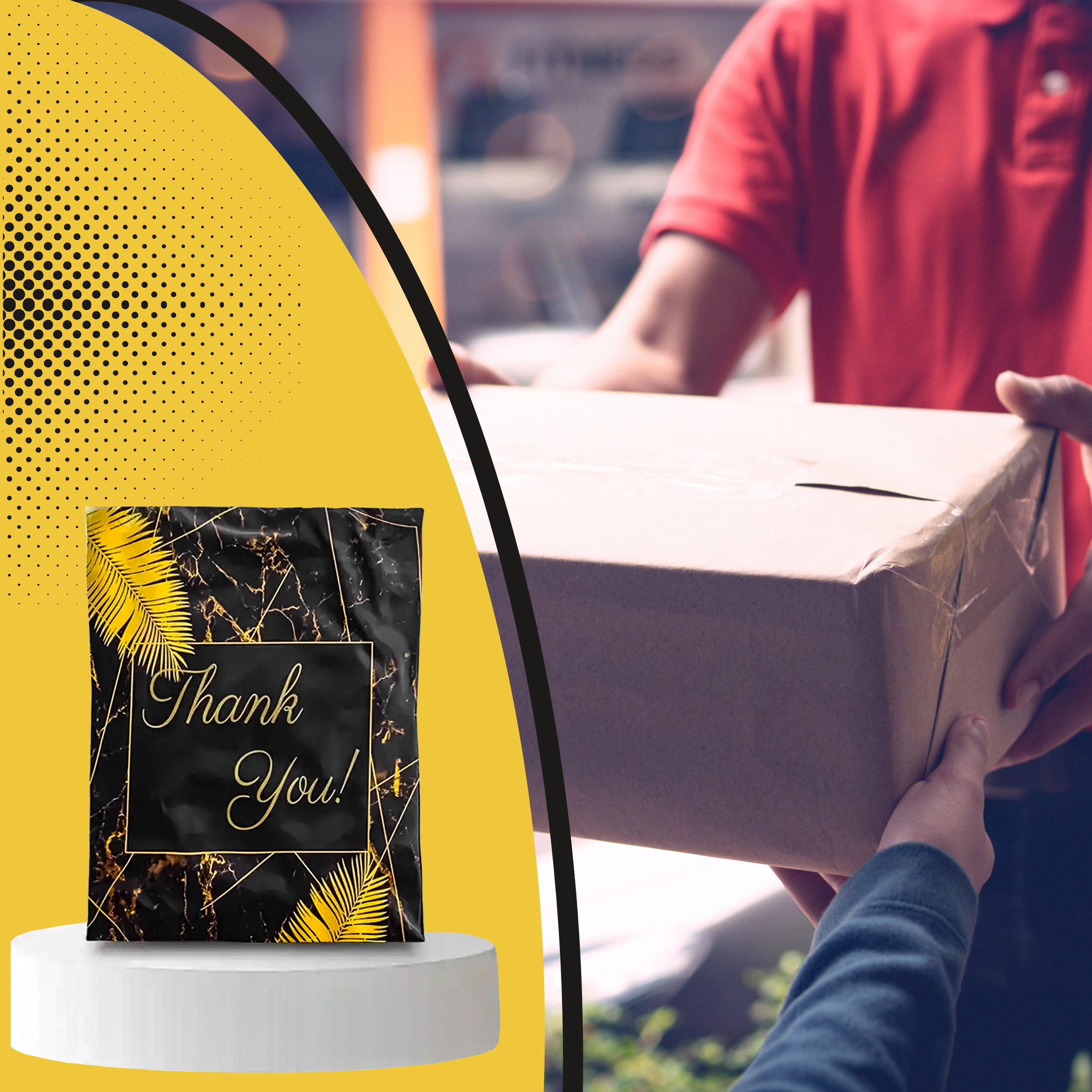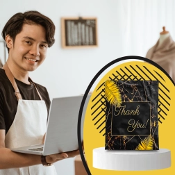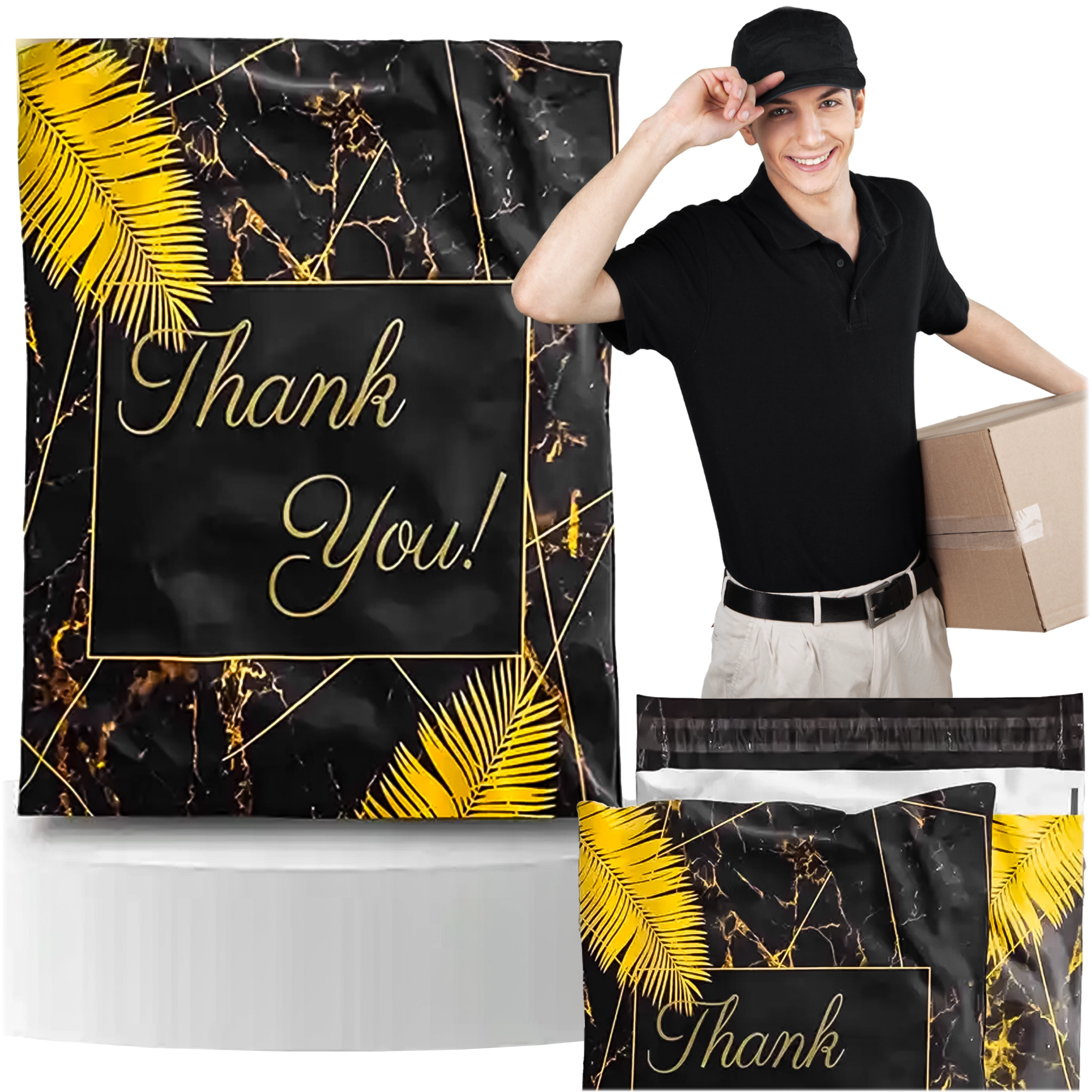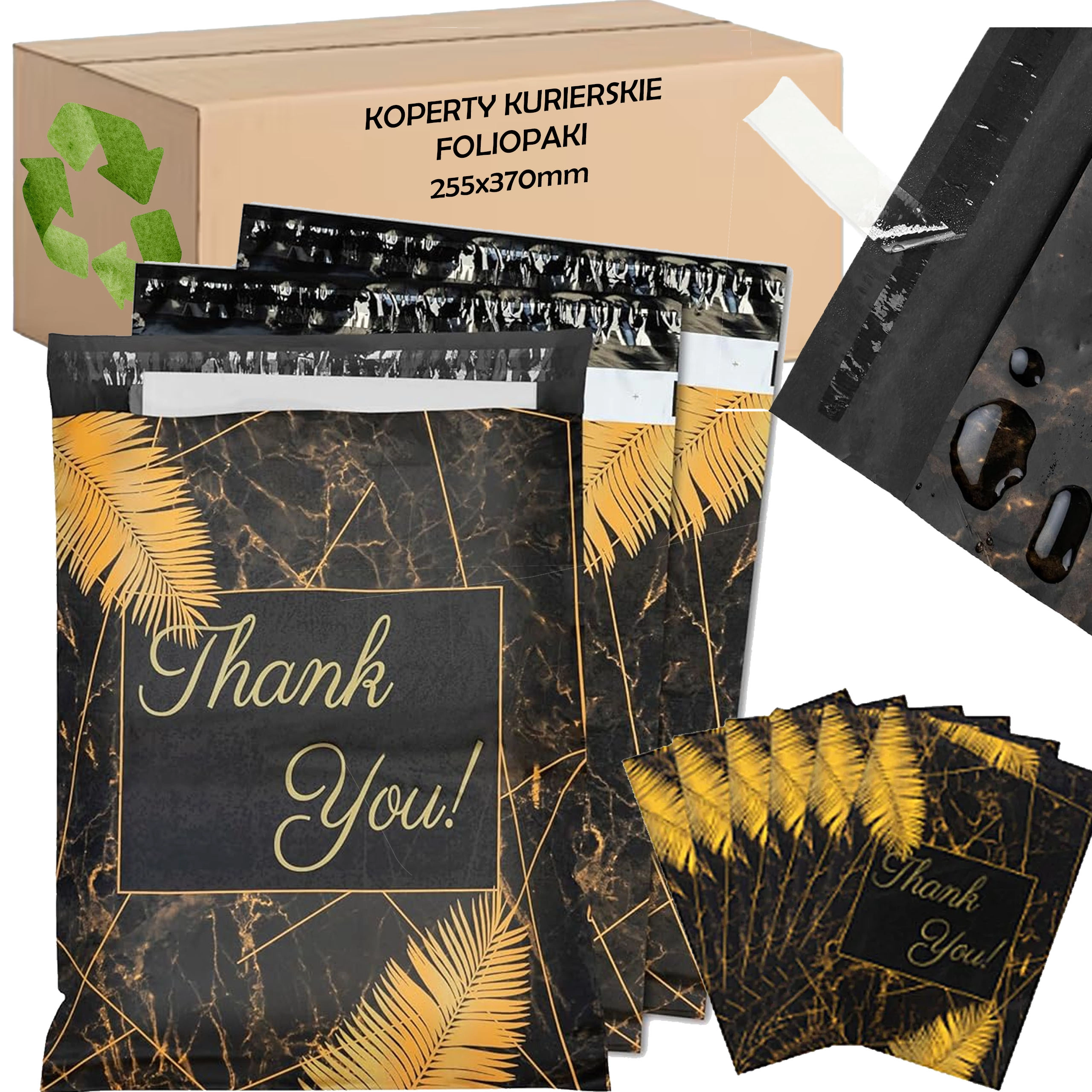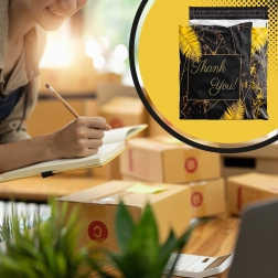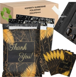 Szukasz niezawodnych opakowań dla e-sklepu lub regularnych przesyłek? Te wytrzymałe foliowe koperty kurierskie o wymiarach 255 × 370 mm świetnie sprawdzą się do mniejszych i średniej wielkości przedmiotów. Czarna powierzchnia z subtelnym napisem Thank You prezentuje się profesjonalnie i zwiększa pozytywne wrażenie z doręczenia.